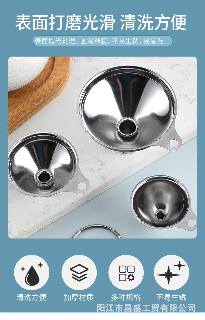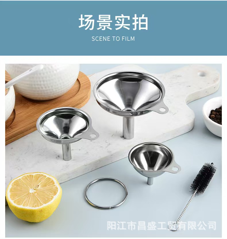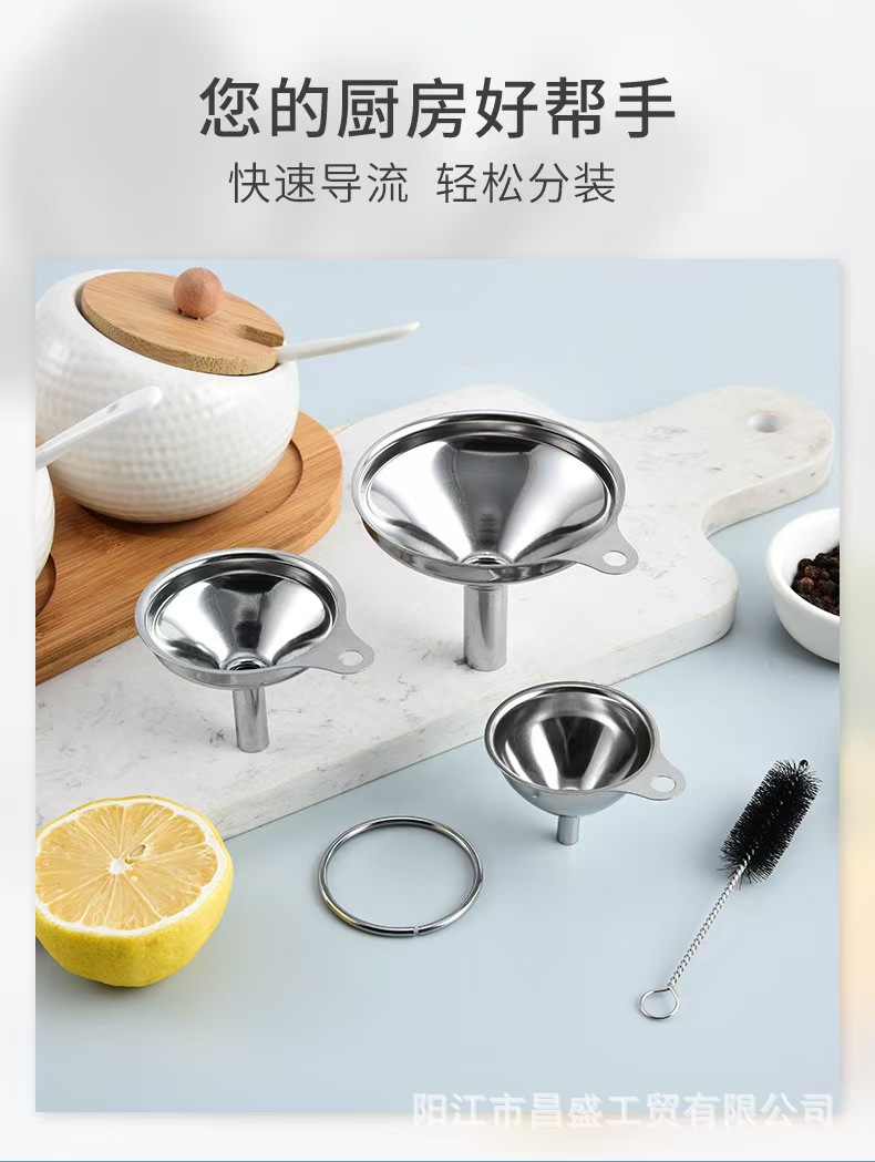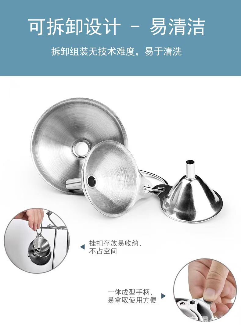 国境を越えた304ステンレス漏斗は家庭用の大小口径濾過網油漏れ酒漏れ台所セット漏斗を厚くした