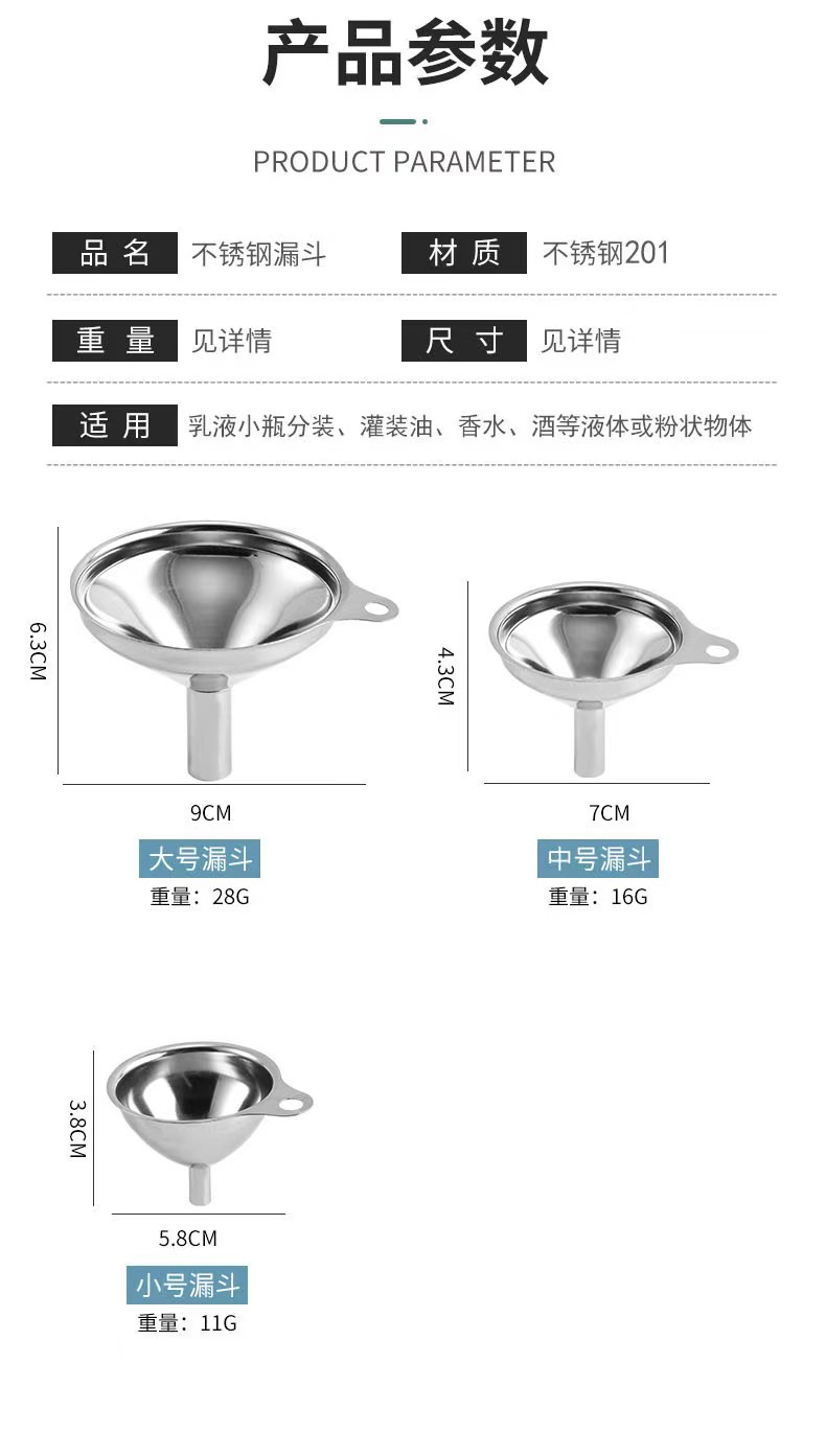ステンレス漏斗三点セットミニ漏斗油酢酒漏れ香水乳液分注器香料油漏れ酒漏斗