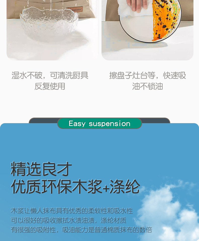 悬挂式懒人抹布加厚加大干湿两用厨房一次性洗碗巾吸水吸油清洁布