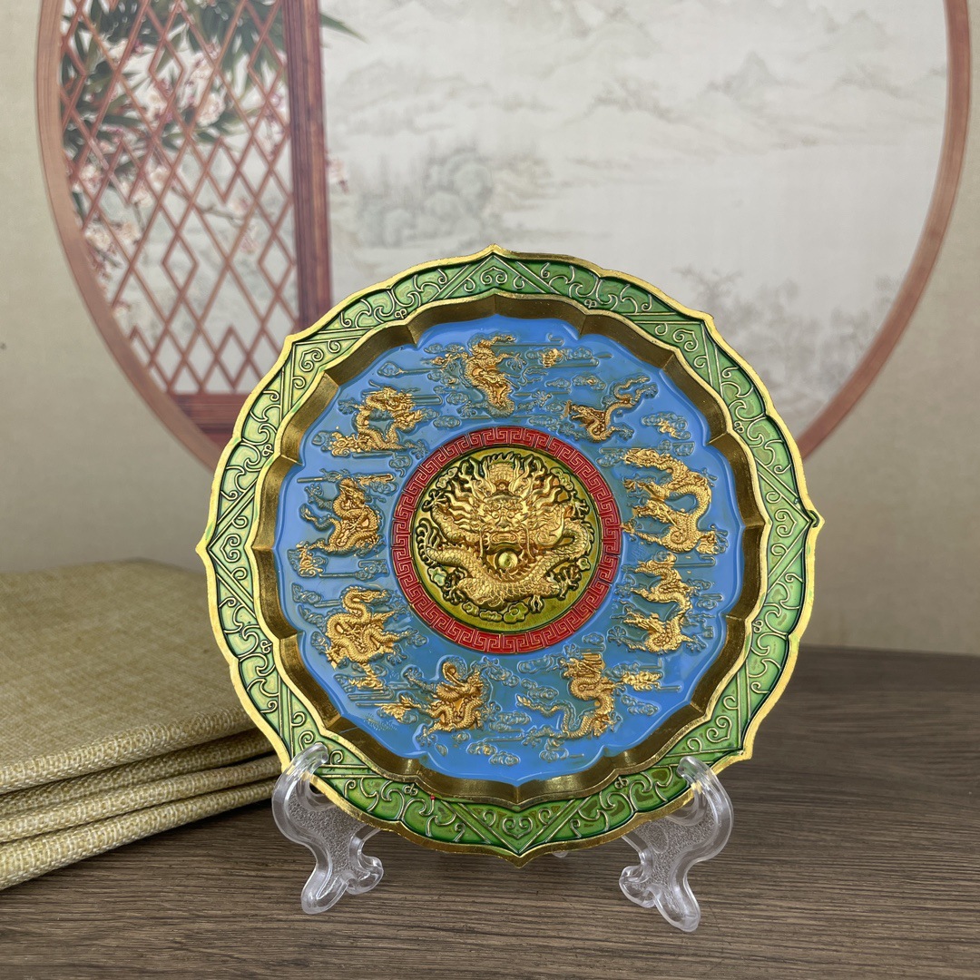 アンティーク七宝銅金龍プレート装飾品アンティークコレクション干支ドラゴン銅プレート工芸品
