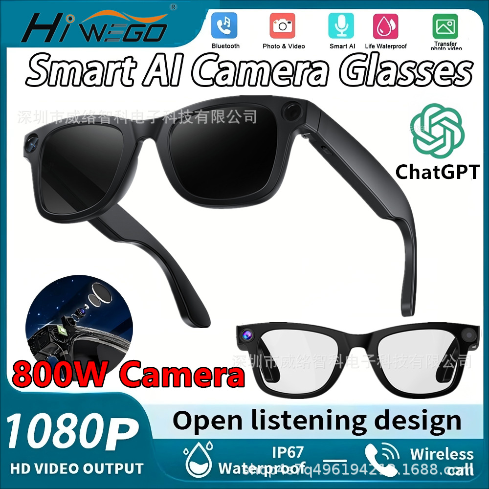 カメラ付きクロスボーダーAI撮影スマートグラス、高精細写真撮影、ビデオ通話、オールオブシングス識別翻訳メガネ