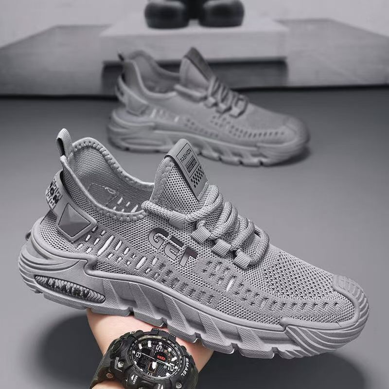 大きいサイズの男性の靴2025春夏の新型のファッションネットの面の飛織ネットの靴の柔らかい底の軽やかで耐摩耗性の通気性のレジャーの運動靴