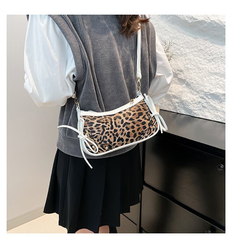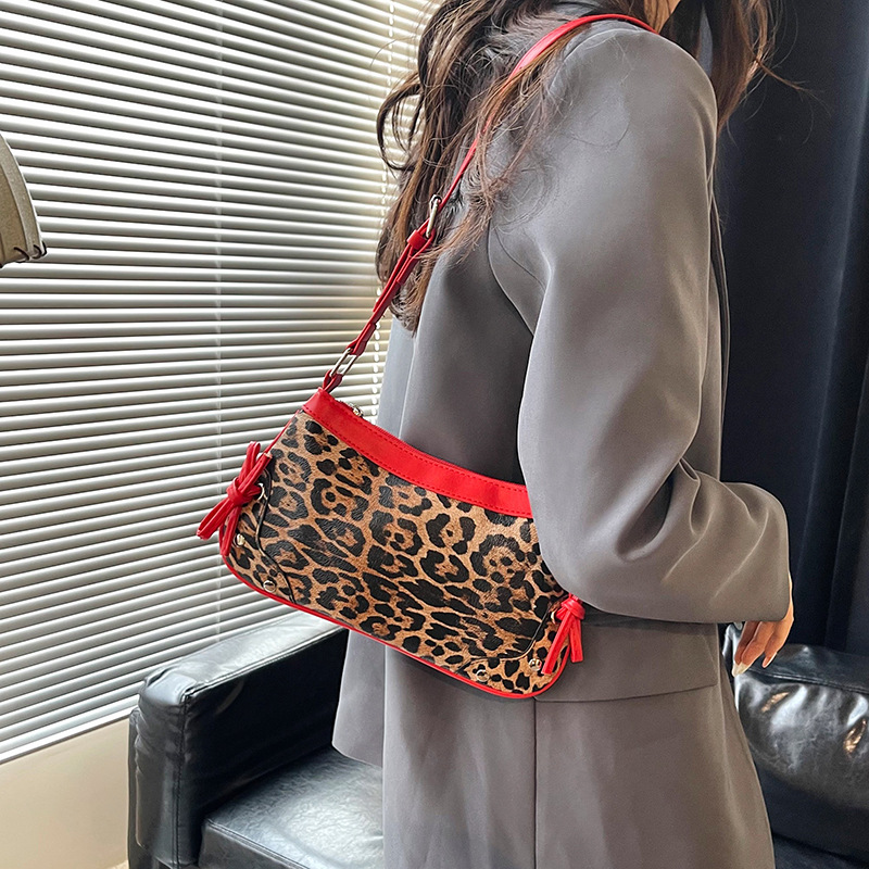 2025新型豹紋衝突色ファッションレトロ韓国系豹紋ファッション気質女性バッグシングル肩斜め脇下バッグ
