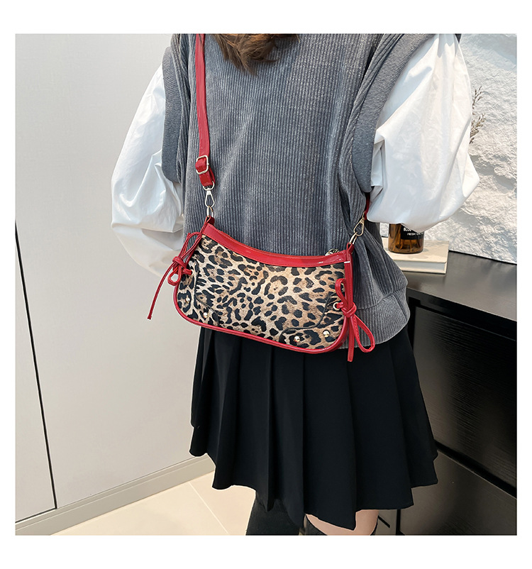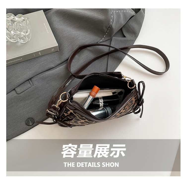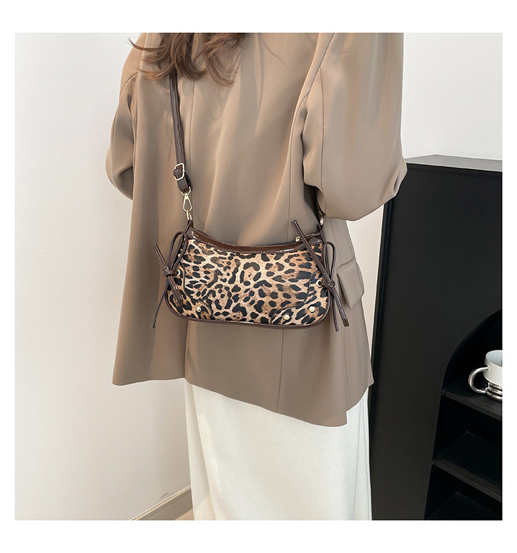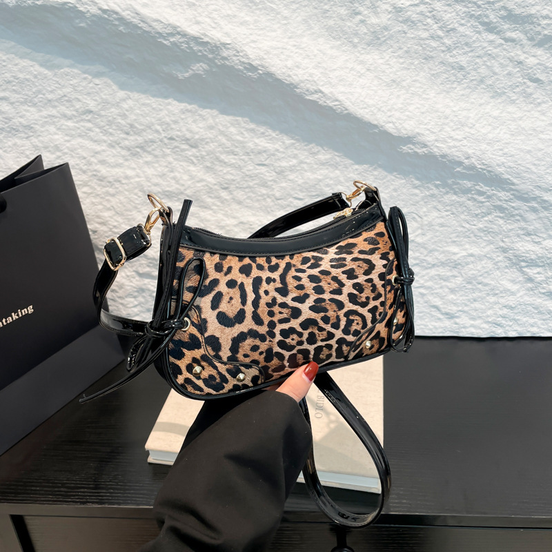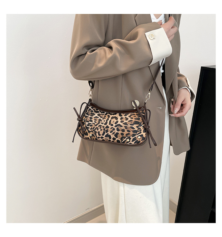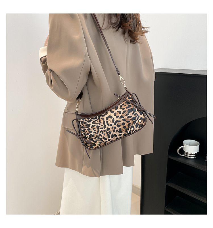 ヒョウ柄レトロリボン脇の下小さなバッグ女性のための 2025 新しい外国貿易トレンディなファッションシングルショルダークロスボディ餃子バッグ