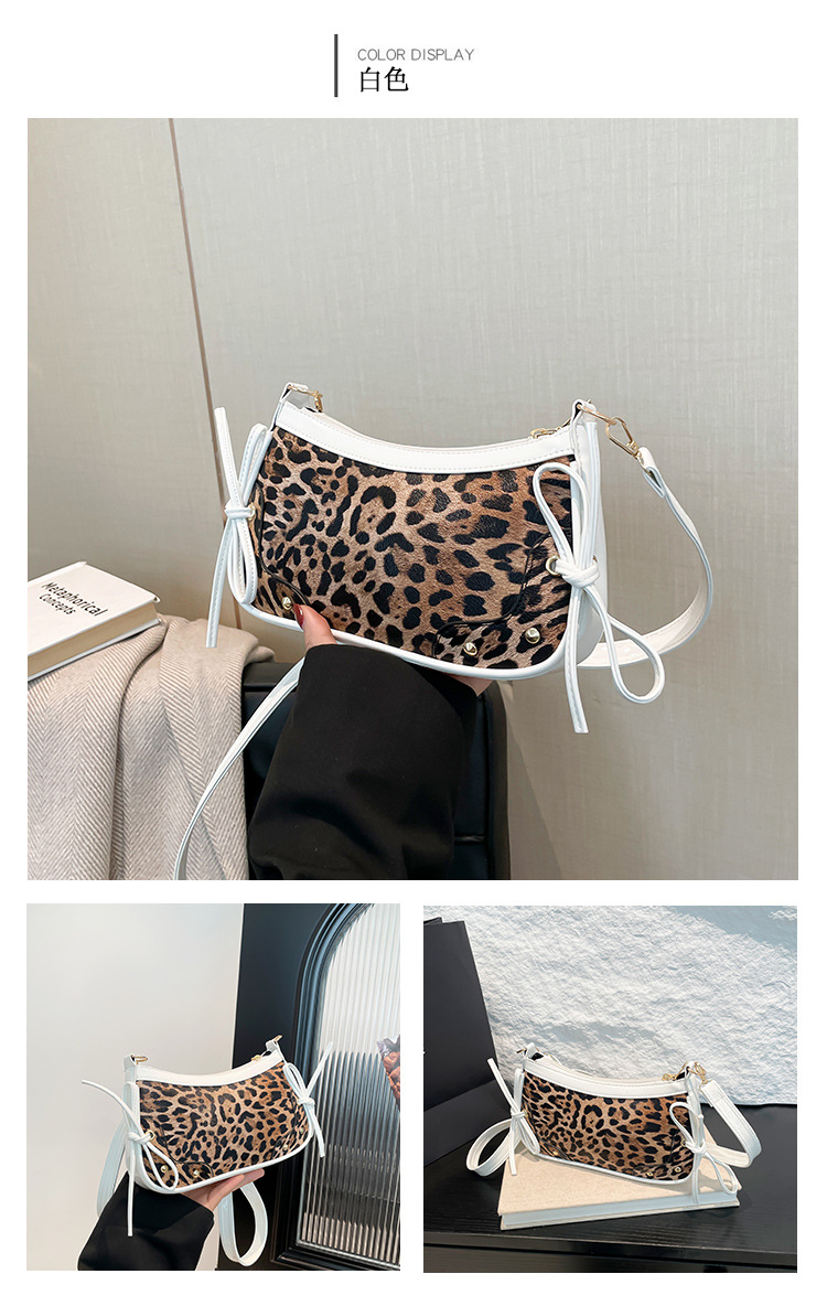 2025新型ファッション豹紋レトロしわ蝶結び欧個性シングル肩斜め掛け脇下女性カバンカバン