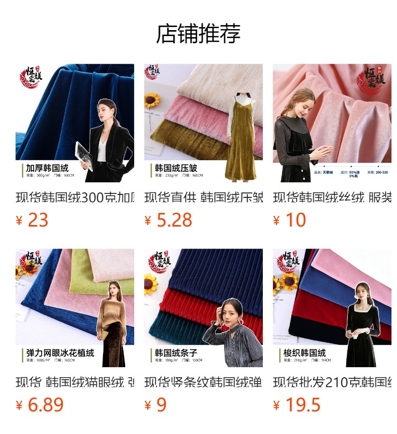 現物卸売り210グラム韓国のベルベット無弾マットベルベット生地布帛金糸ベルベット生地
