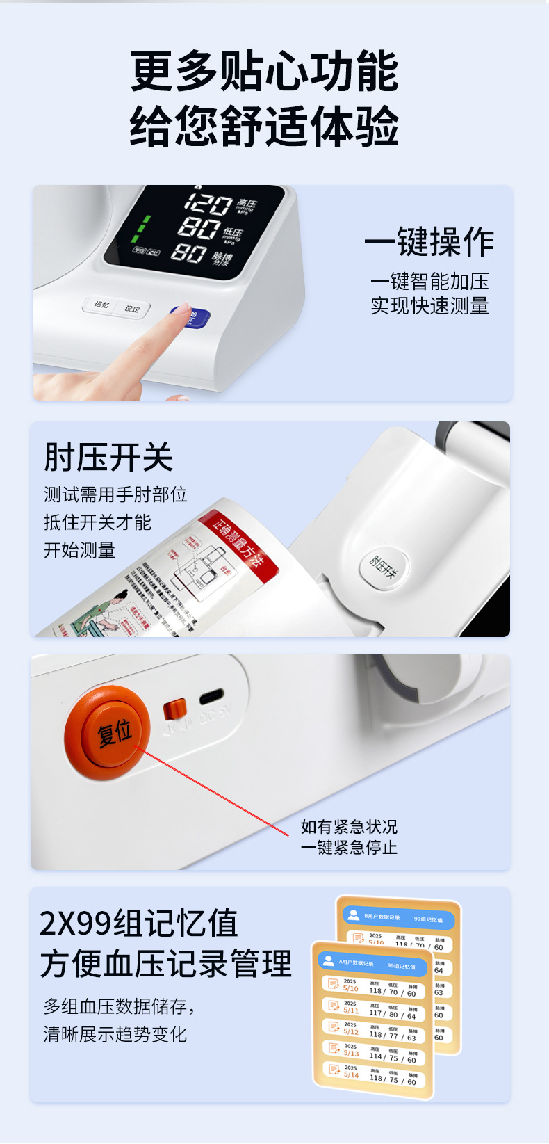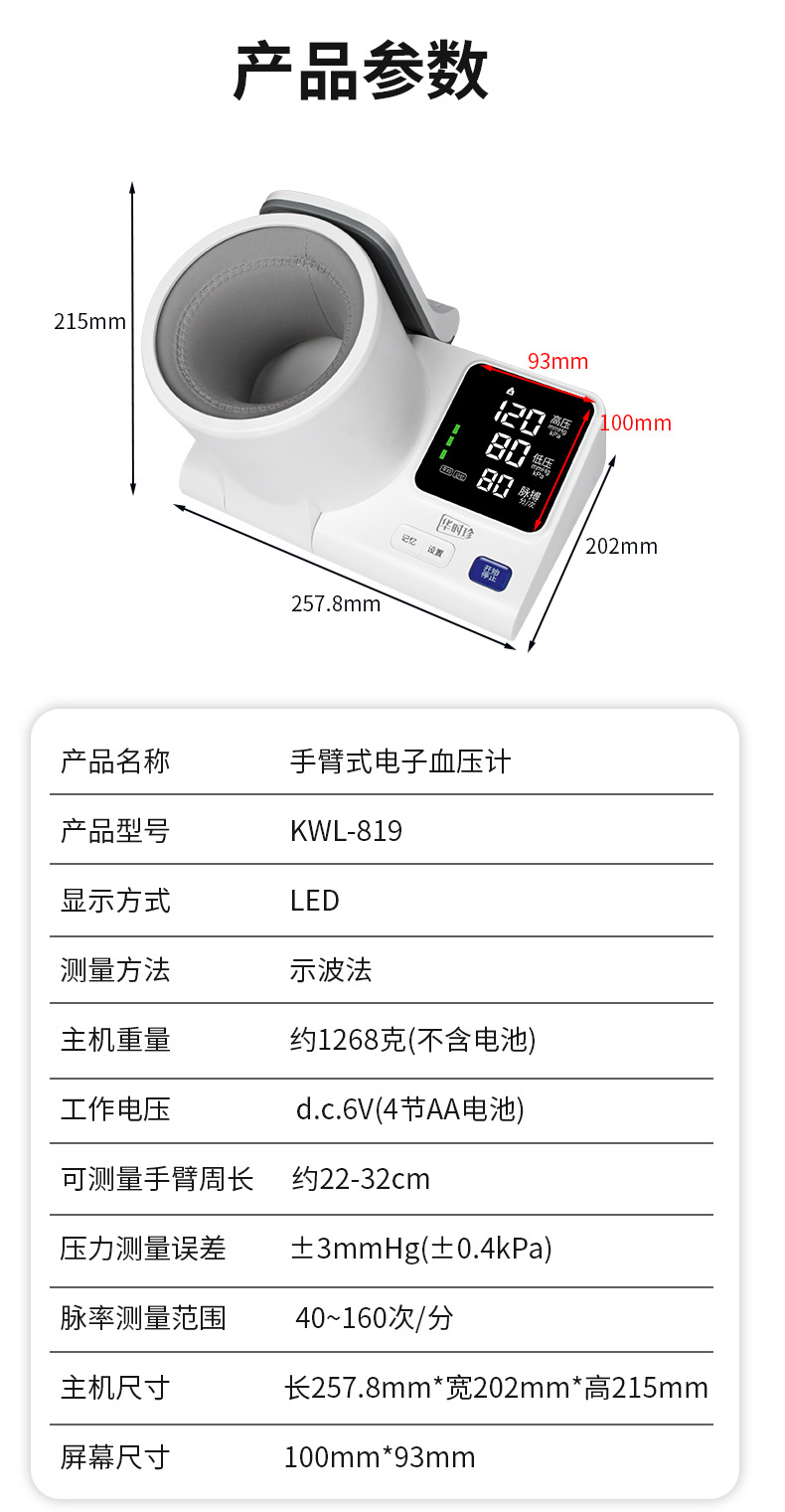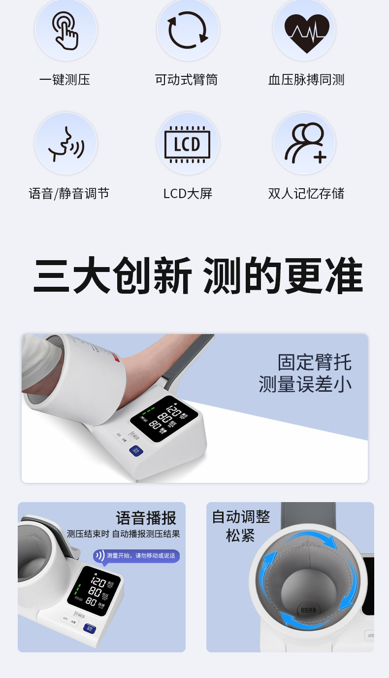 华时珍隧道血压计智能血压器臂筒式电子测量仪医用级中英文外贸