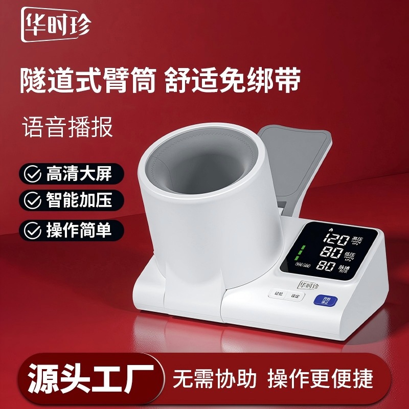 华时珍隧道式臂筒血压计家用全自动免绑臂带血压仪智能血压表工厂