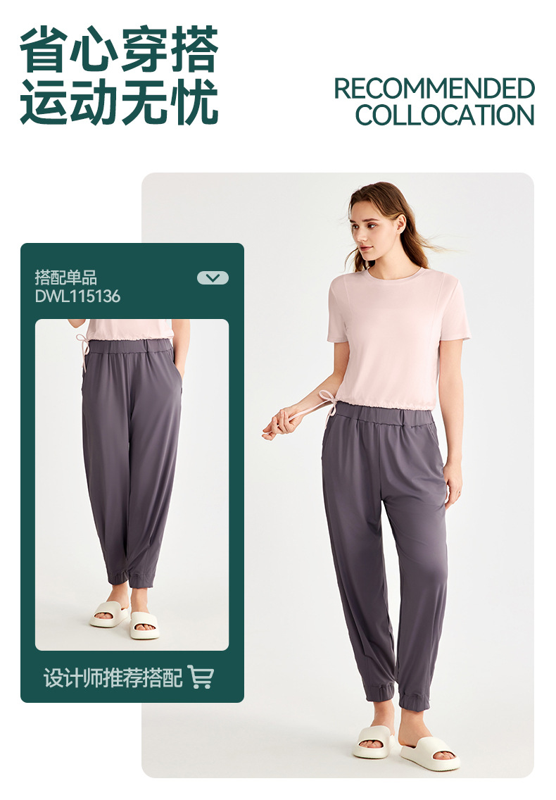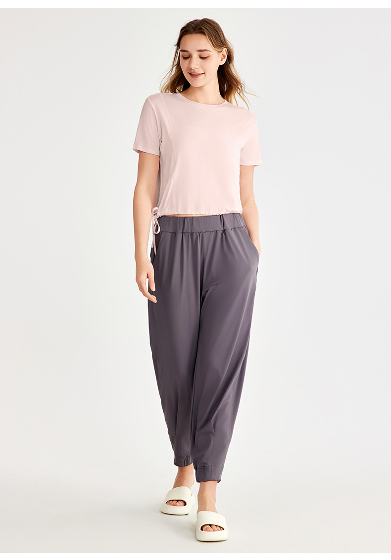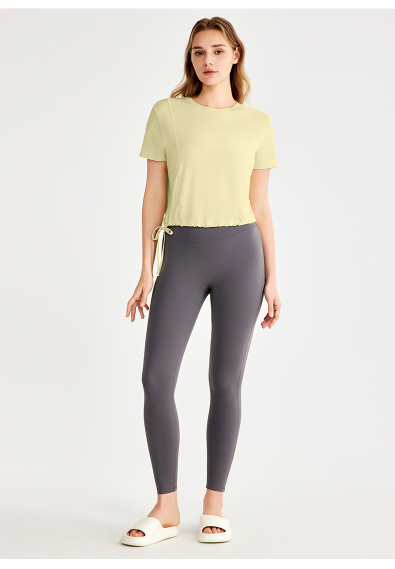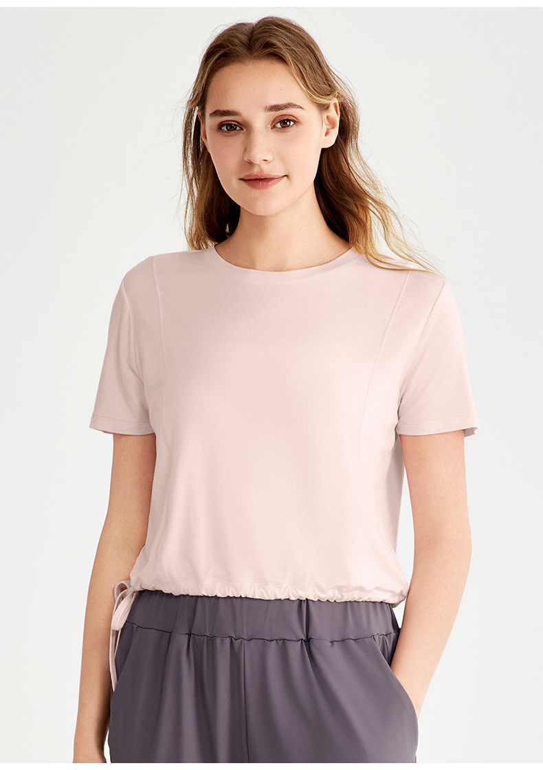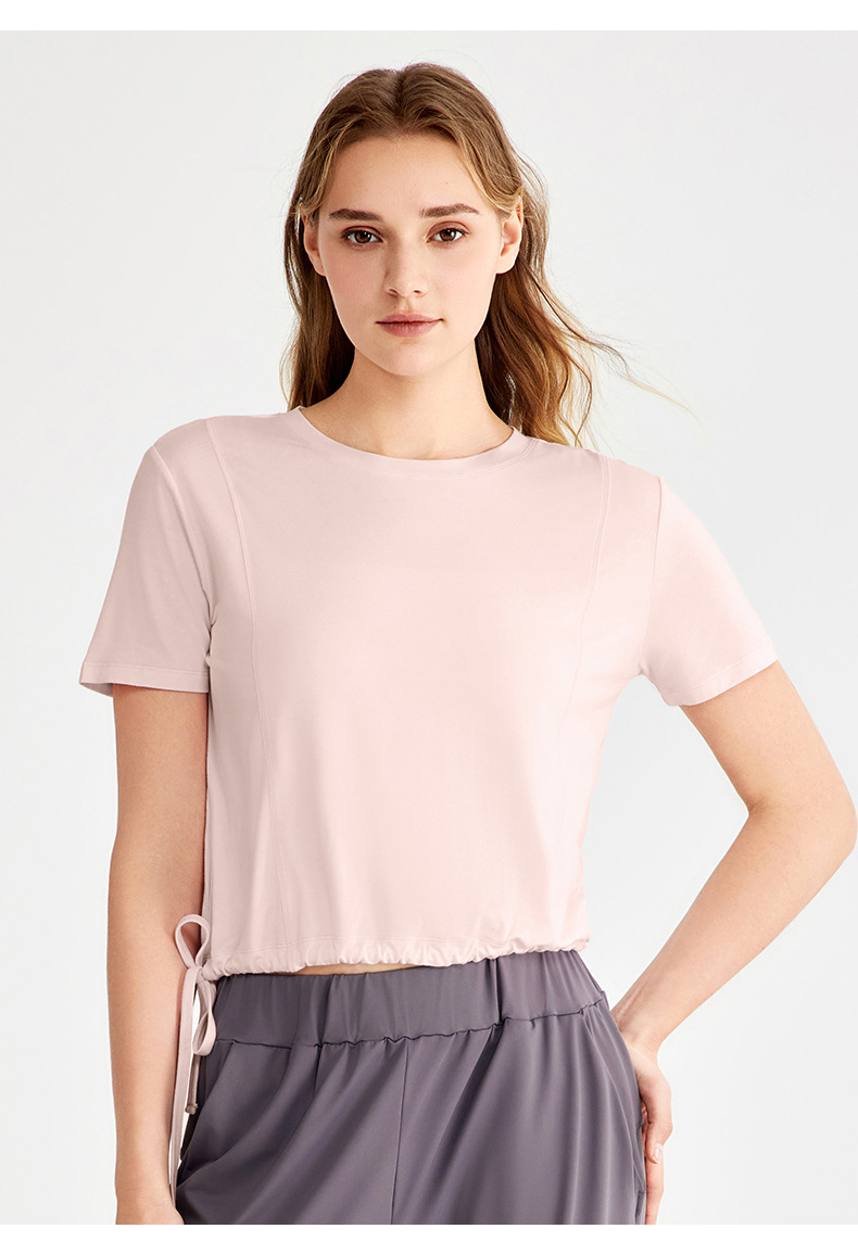 云感ソフトモチゆるいスポーツトップス半袖レディース裾引きひも通勤ショートTカジュアルフラットヨガ服tシャツ