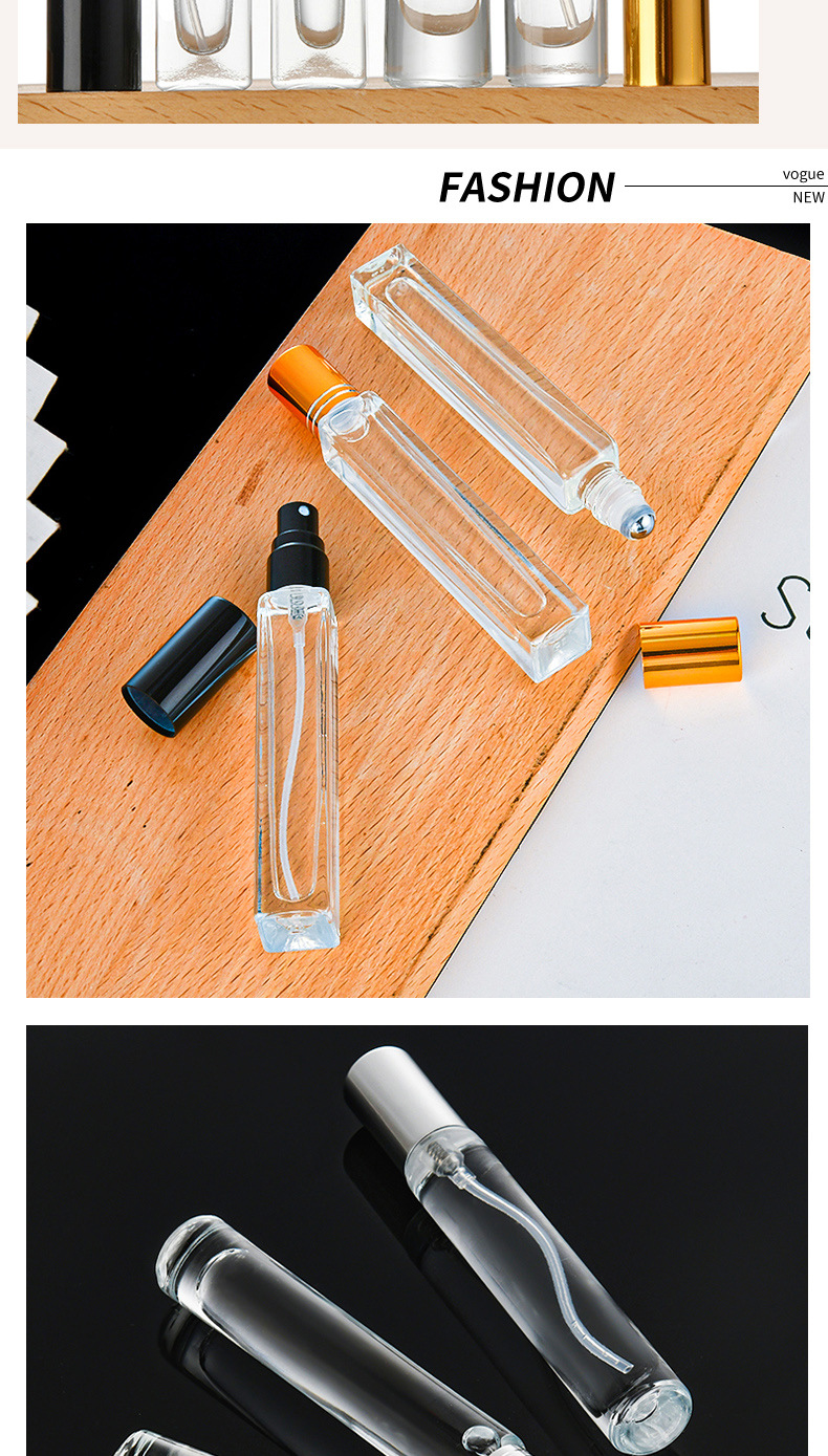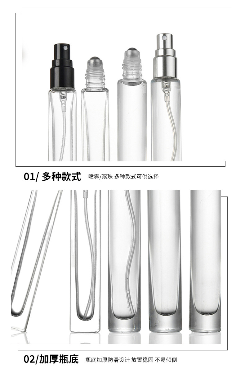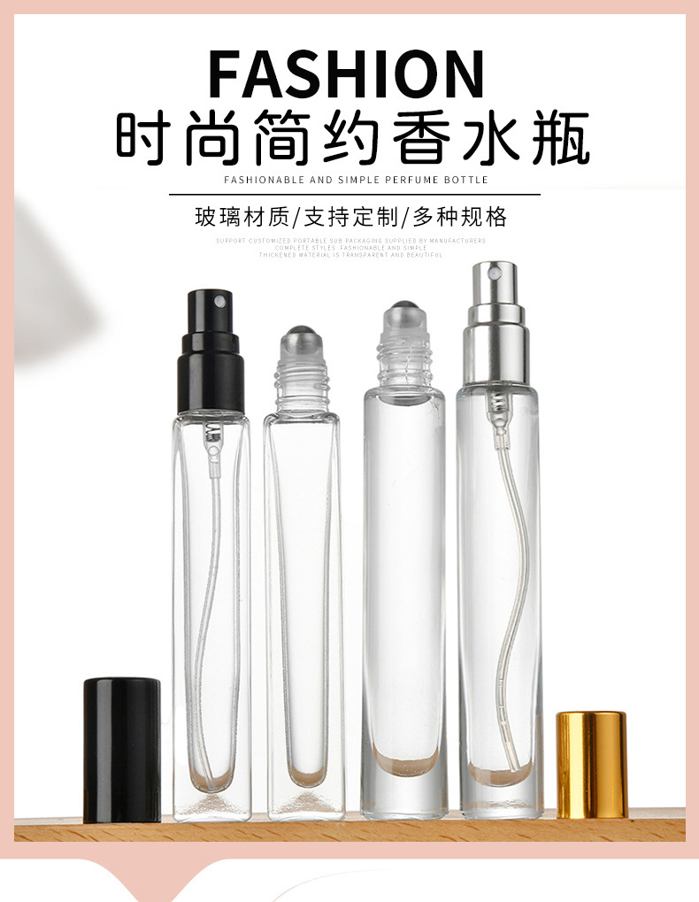 スポット香水ボトル正方形ラウンド透明ガラス旅行ポータブルプレススプレーボトル化粧品詰め替えボトル卸売