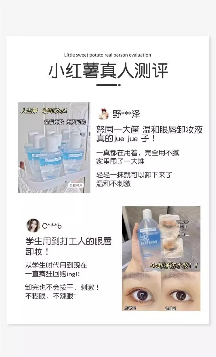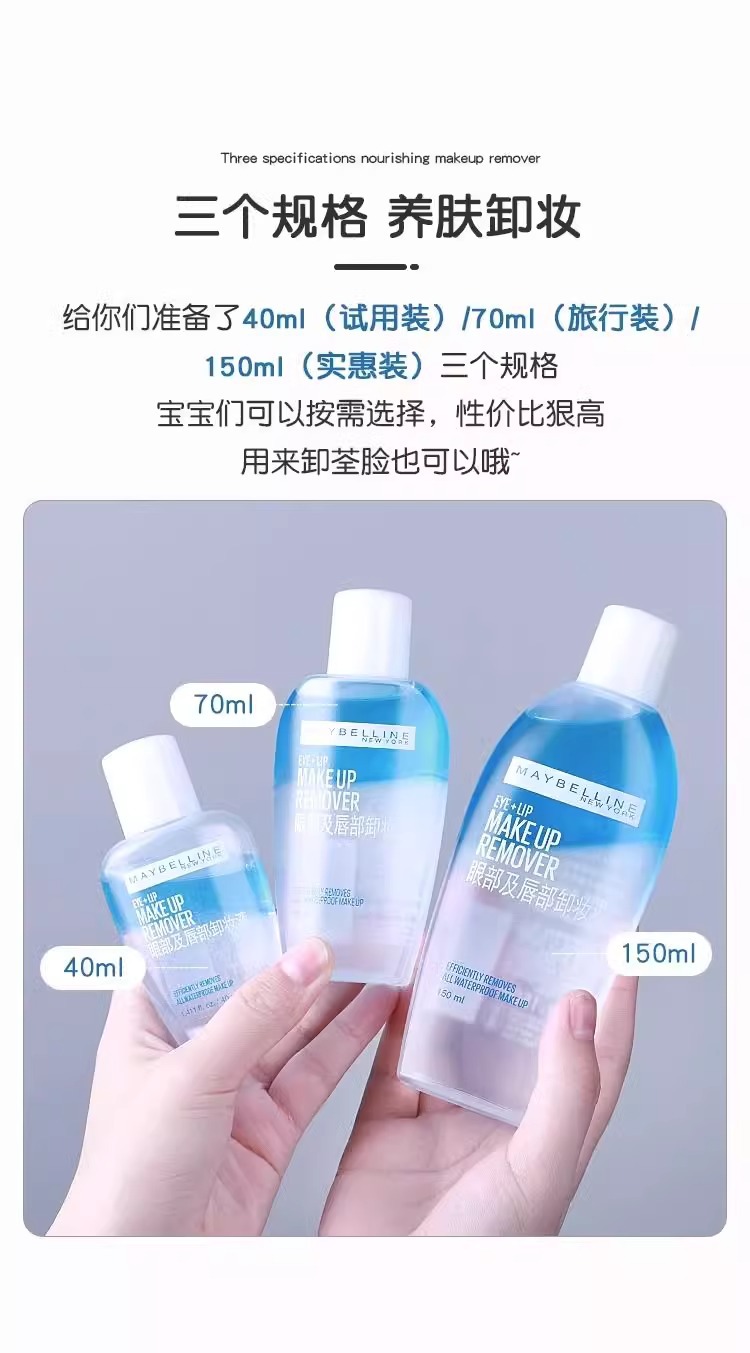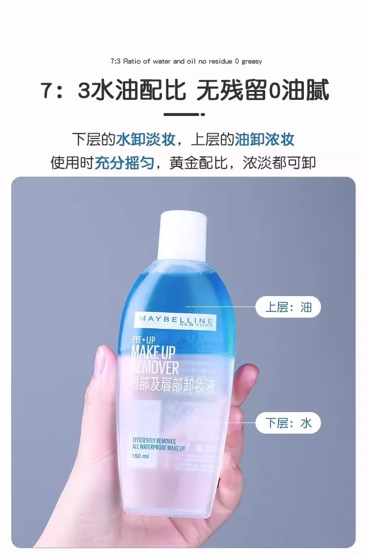 美宝连纽约眼唇卸妆水液三合一深层清洁卸妆油温和净澈敏感肌正品