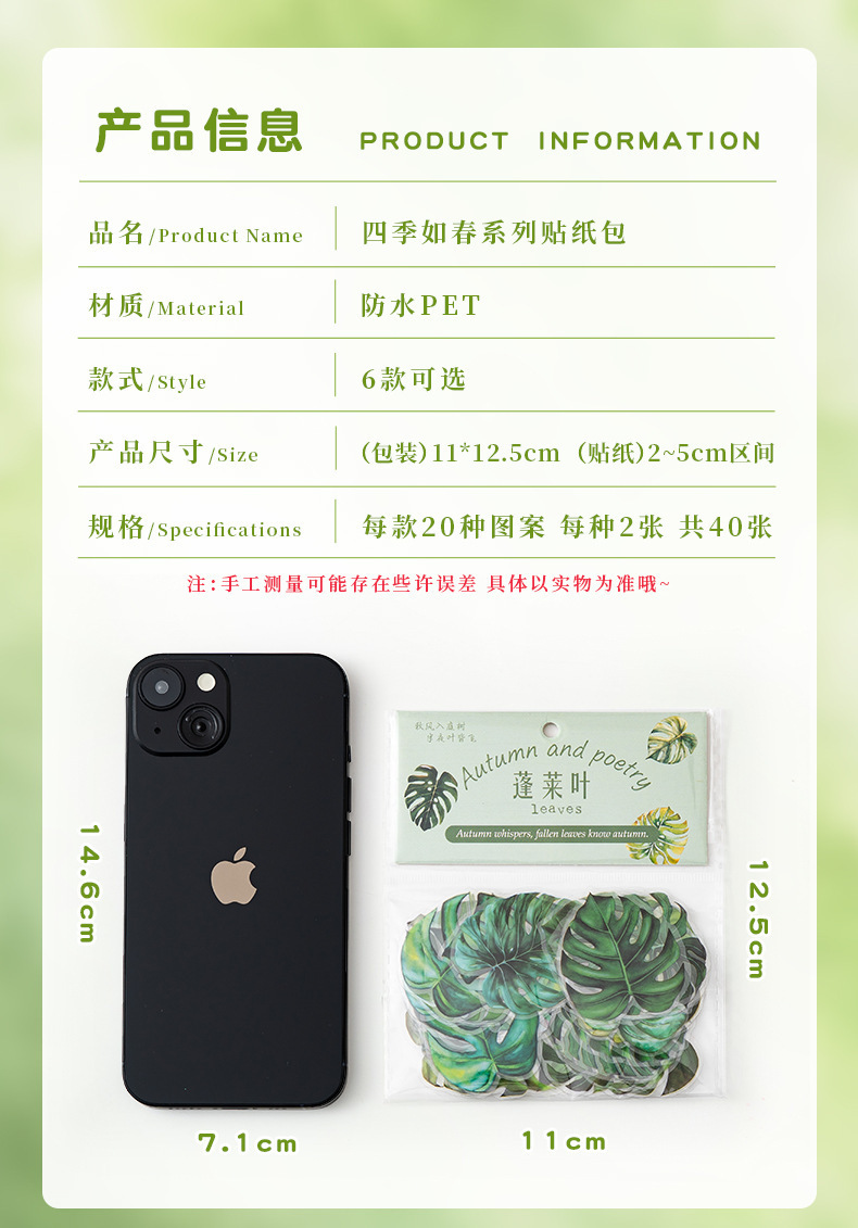 四季は春のレトロな植物の落葉pet透明防水シールdiy手帳装飾素材タイル小貼り画のようだ