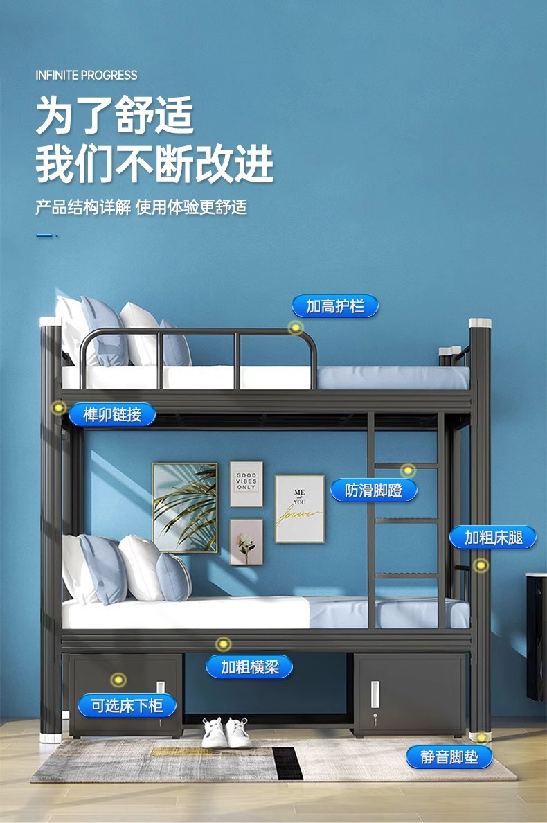 二段ベッド鉄骨ベッド学生寮スタッフ建設現場二段高低棚ダブル寝室アパートシングル鉄ベッド