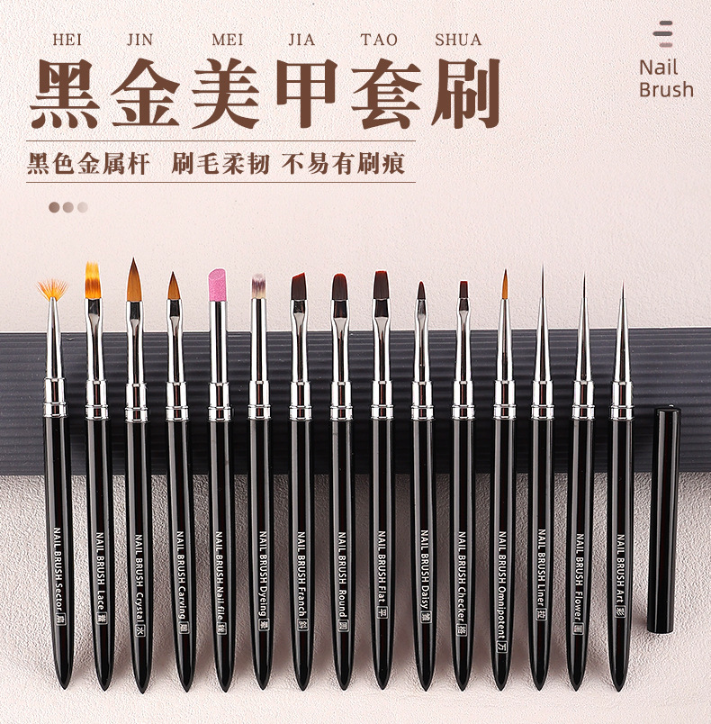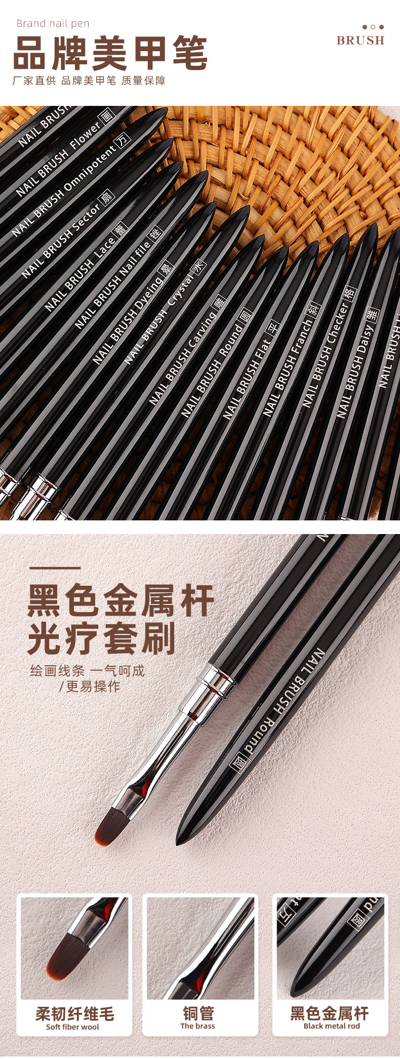 クロスボーダーメタルポールネイルアートブラシセット、ペイントブラシ、構築ブラシ、グラデーション扇形ブラシ、クリスタルブラシ、ネイルサロンツール