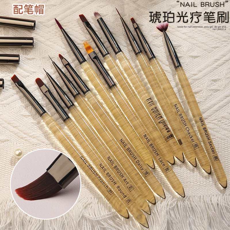 琥珀色のマニキュアブラシ一式セット、和風糸引き掃除機能ペン、特殊光線療法ペン、スマッジペン