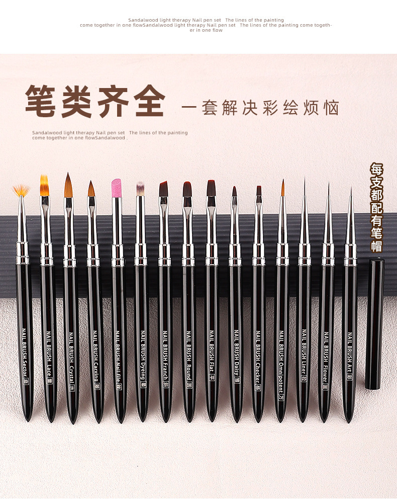 アマゾン品質の白檀ネイルクリスタルペン、ミンク毛ペン、彫刻ペン、エクステンションネイルクリスタルパフ、パウダーペン、ネイルブラシ