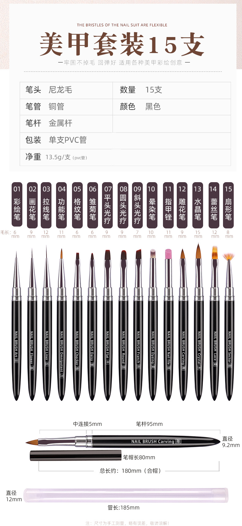 商品番号 160#ブラックペイントメタルロッド15本ネイルアートペン
