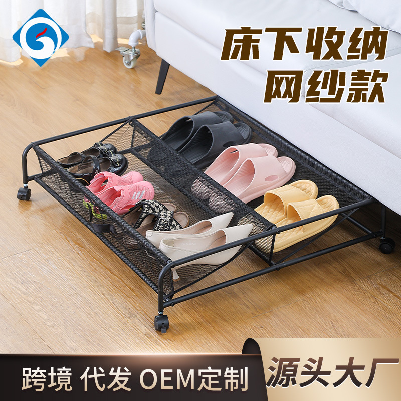 メーカー卸売ベッド底物置棚網状プーリー靴整理多機能鉄製ベッド底収納ボックス物置