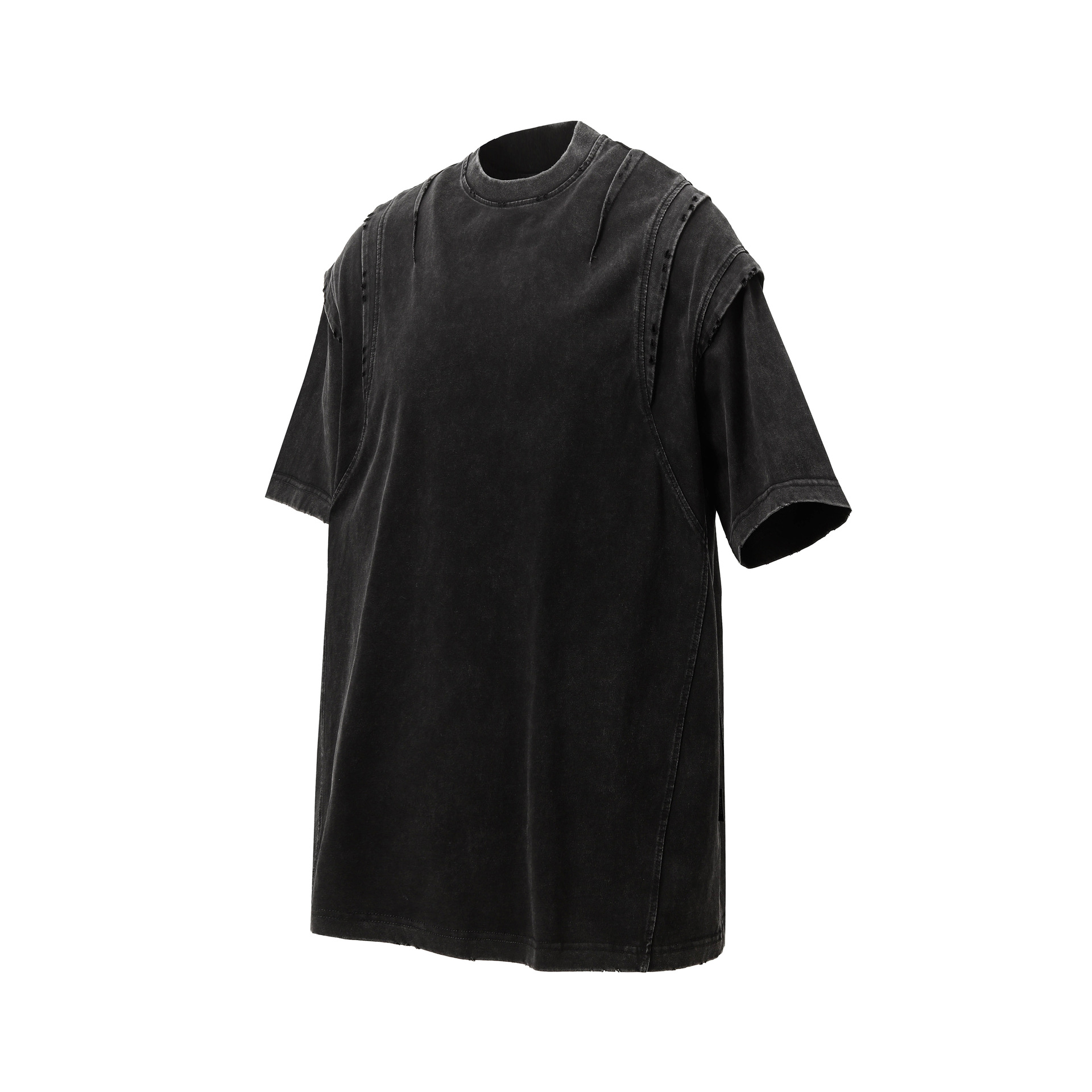 嘉衣庫紳士服2025新型アメリカ街頭潮牌小衆tee重ポンド水洗切断糜爛tシャツ半袖