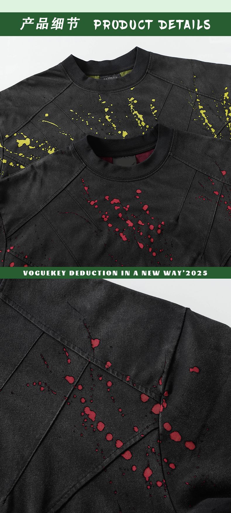 縦馳衣社2025新型アメリカ式高街運動潮流アルファベットプリント男性布刺繍打釘tシャツ