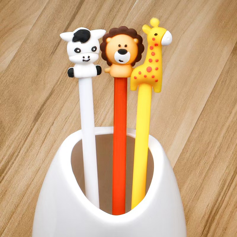 かわいい女の子らしい漫画風シリコン動物キャラクターボールペン、学生用、オフィス用、練習用ペン