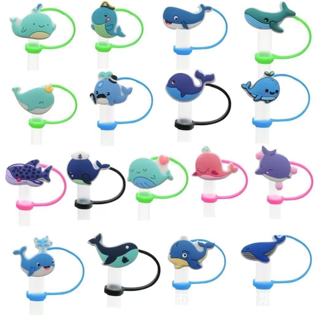 可爱鲸鱼主题硅胶吸管帽卡通吸管装饰套吸管防尘防溢帽批发