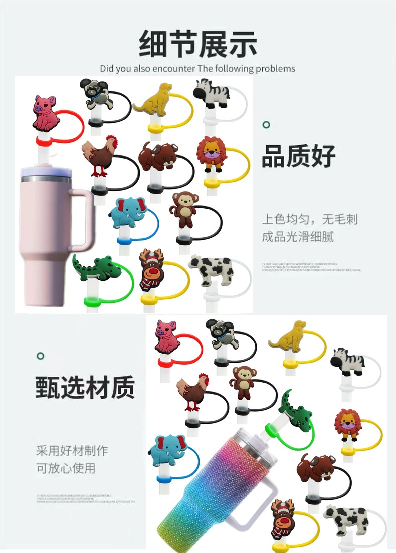 動物型漫画ストローハット シリコンストロー保護カバー 水筒ストロー装飾カバー 工場直販