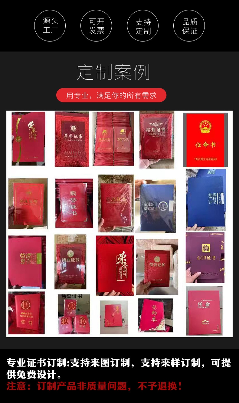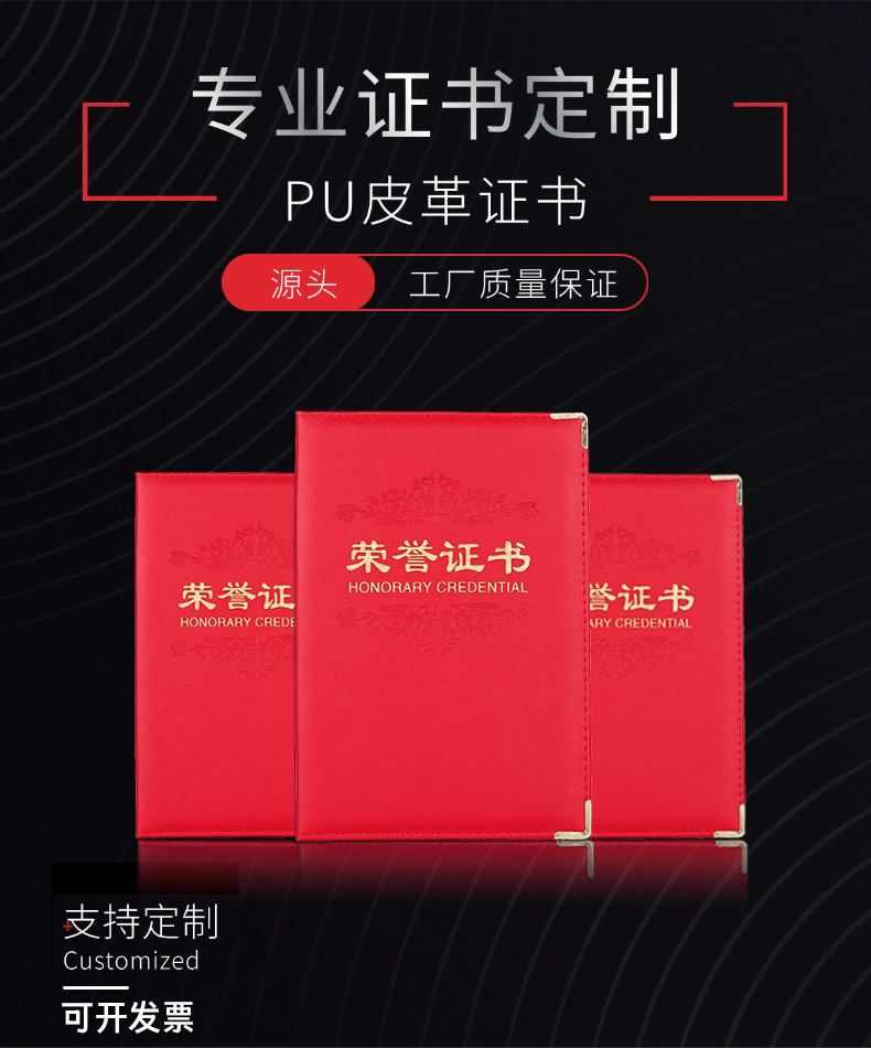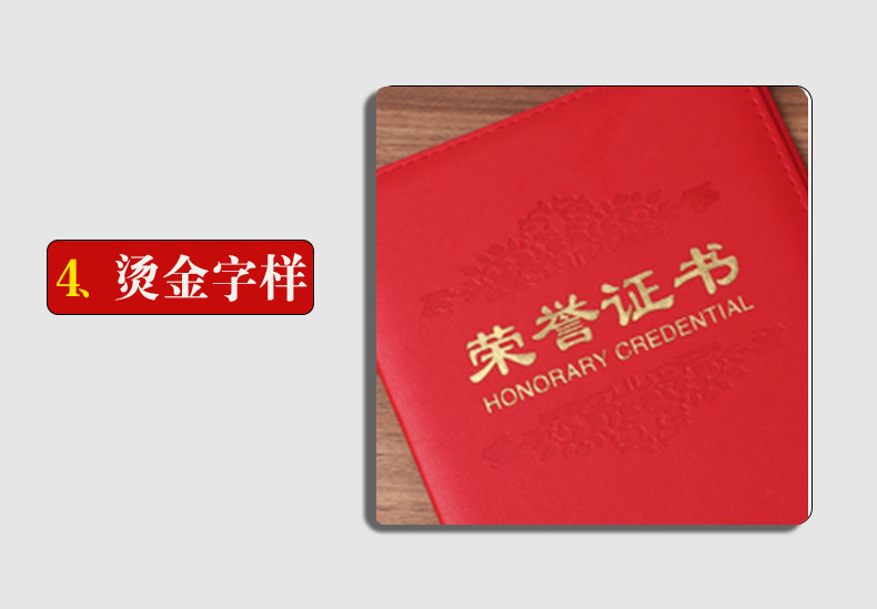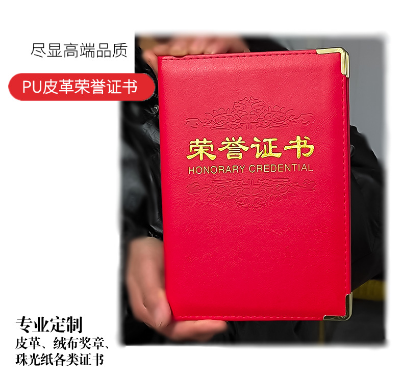 皮面烫金证书红色荣誉证书定制加厚外壳12K加内芯页可打印礼盒装