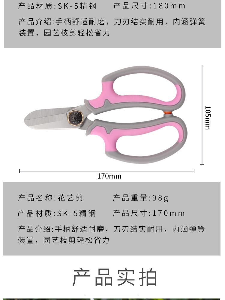 SK5ステンレス剪定鋏、SK5果物摘み鋏(カーブタイプ)、SK5果物摘み鋏(ストレートタイプ)、花柄鋏(ピンク)、SK5剪定鋏+花