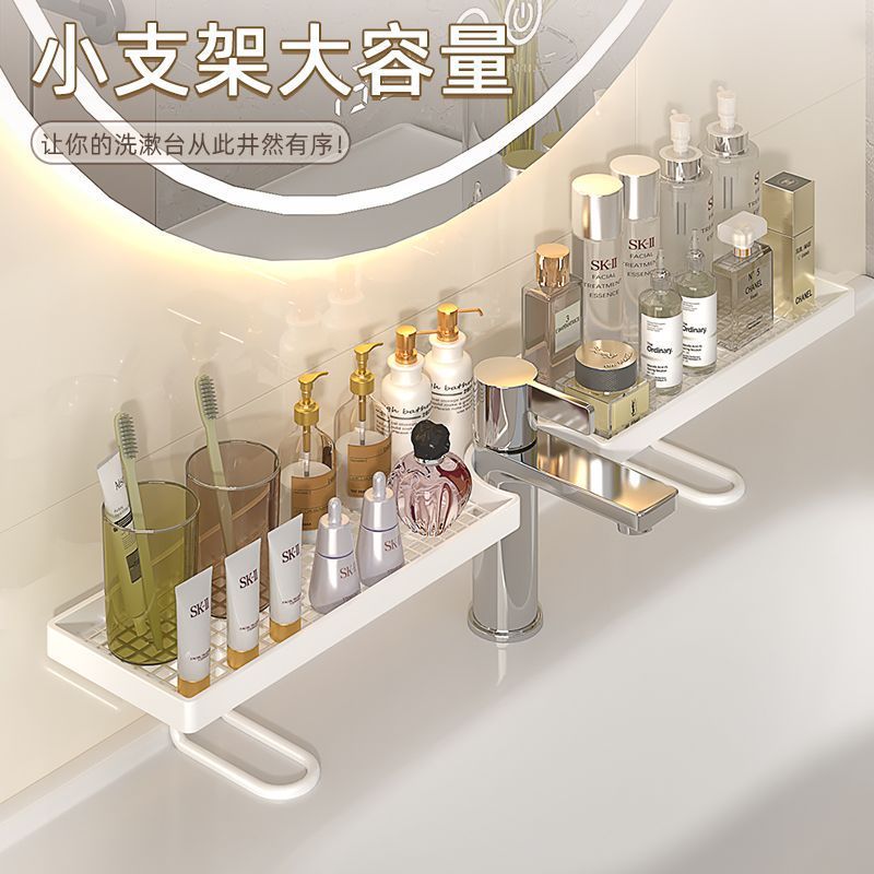 奶油风卫生间置物架浴室洗漱台洗手池上方镜前免打孔收纳架子