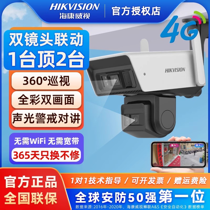 海康威视4g摄像头永久免充值流量500万监控器室外高清夜视人形5g