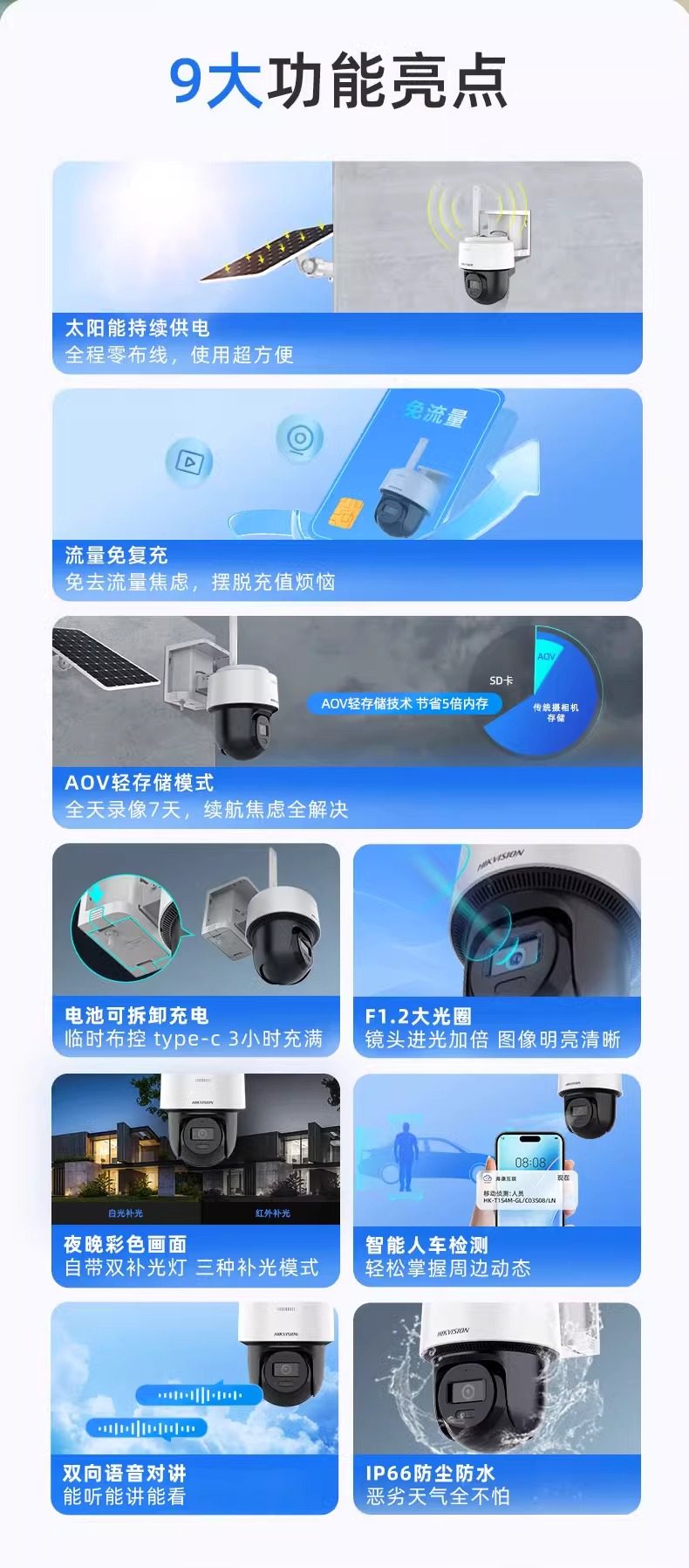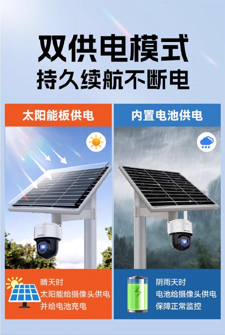 海康威视 4G终身流量太阳能800万摄像头400万双摄版 室外防水球机