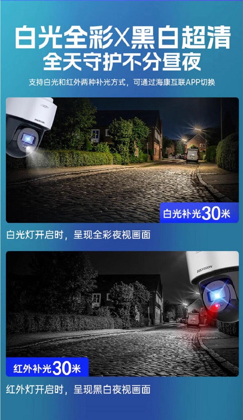 海康威视4G双摄500万终身流量语音对讲室外防水摄像头球机3Q155MW