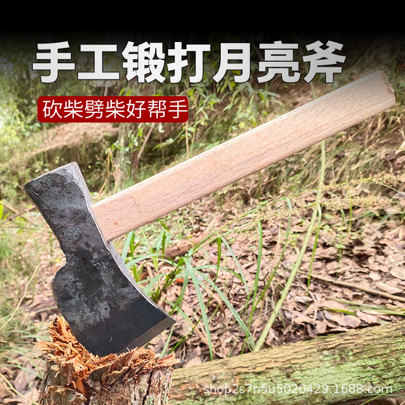 木柄付きスプリングスチール製三日月斧、中刃斧、薪割り、木切り、伐採斧、山岳開墾斧、薪割りツール