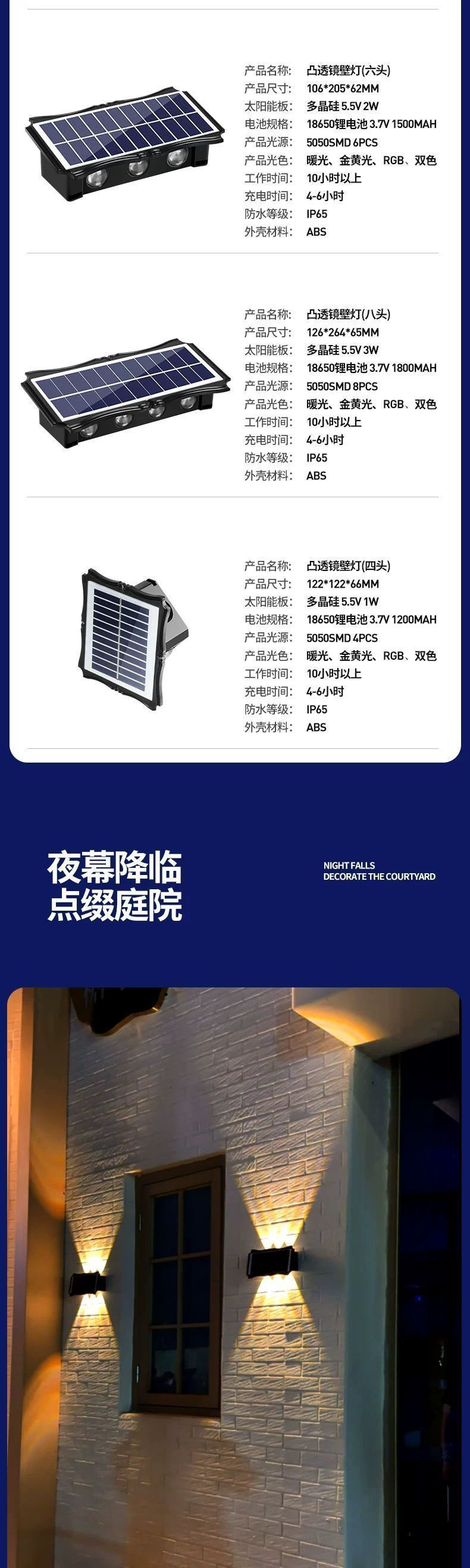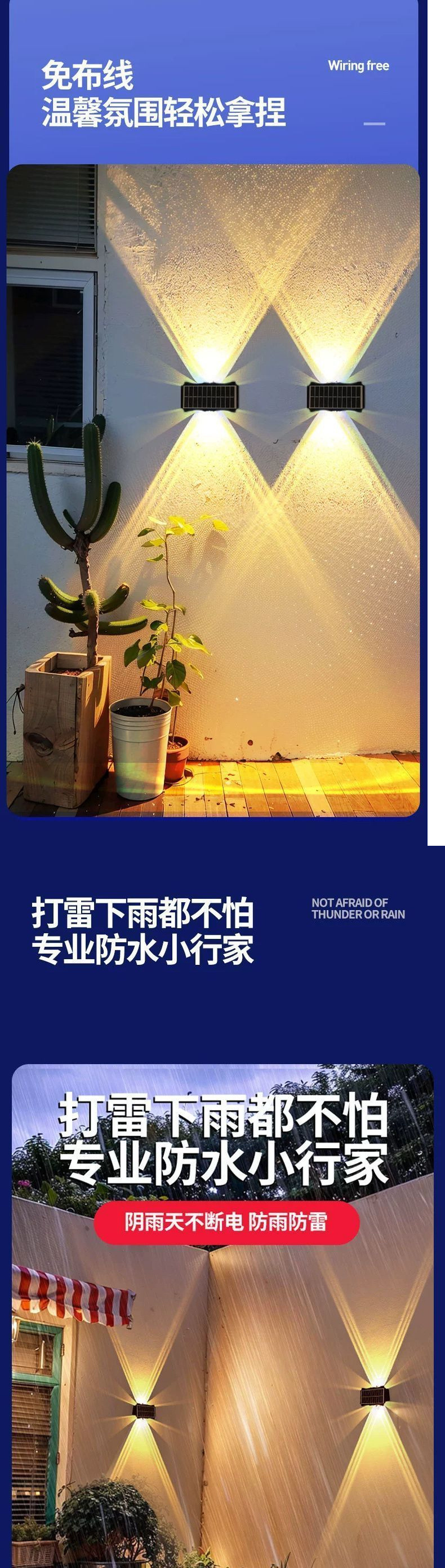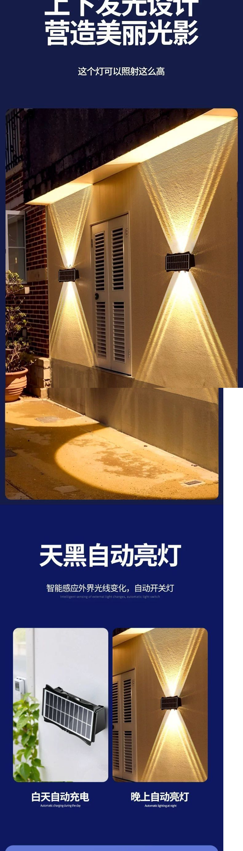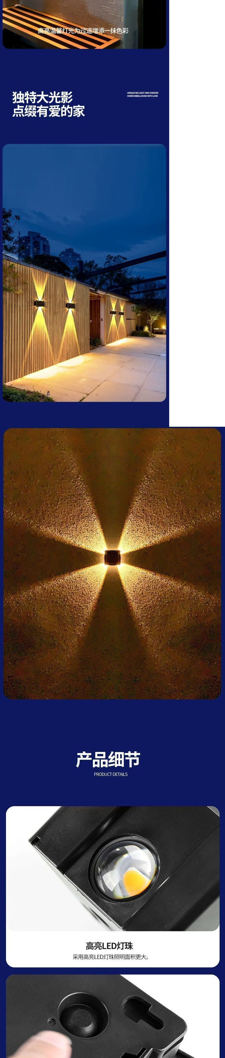 新しい太陽エネルギーの庭の明かりの屋外の防水の外壁は室外の壁の明かりの上下の発光の塀の雰囲気の明かりを飾ります。