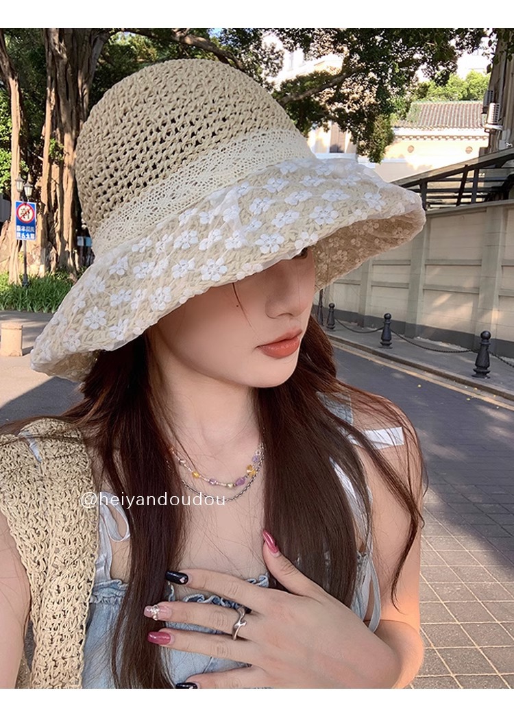 麦わら帽子の女性の新型日本の小さい清新なレースの草は帽子を編んで夏に旅行します。