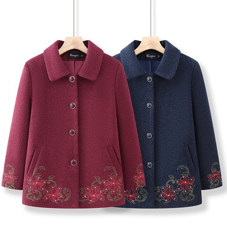 太ったお母さんの大きいサイズのコートは洋風で高貴です。