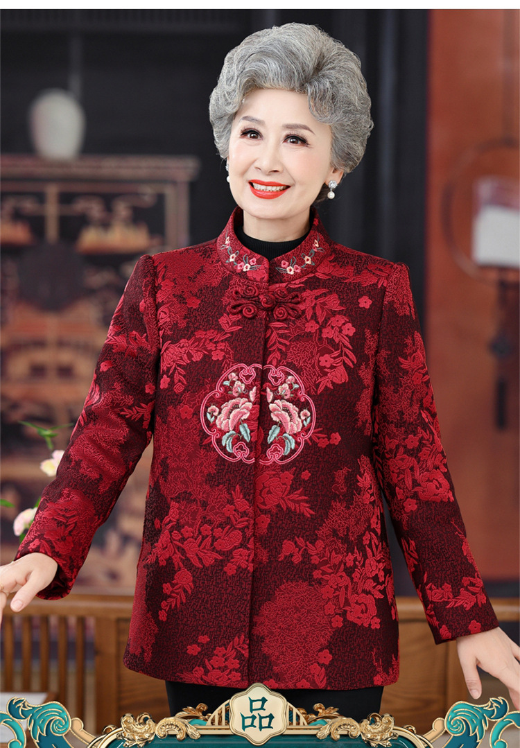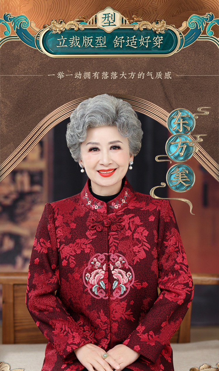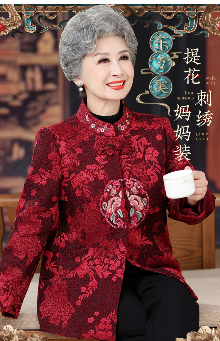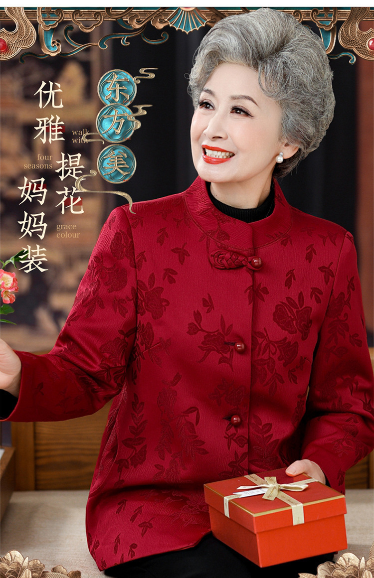 高齢者唐装女性老婦人中国風コートお祝い披露宴ドレス母春装60歳祖母秋装