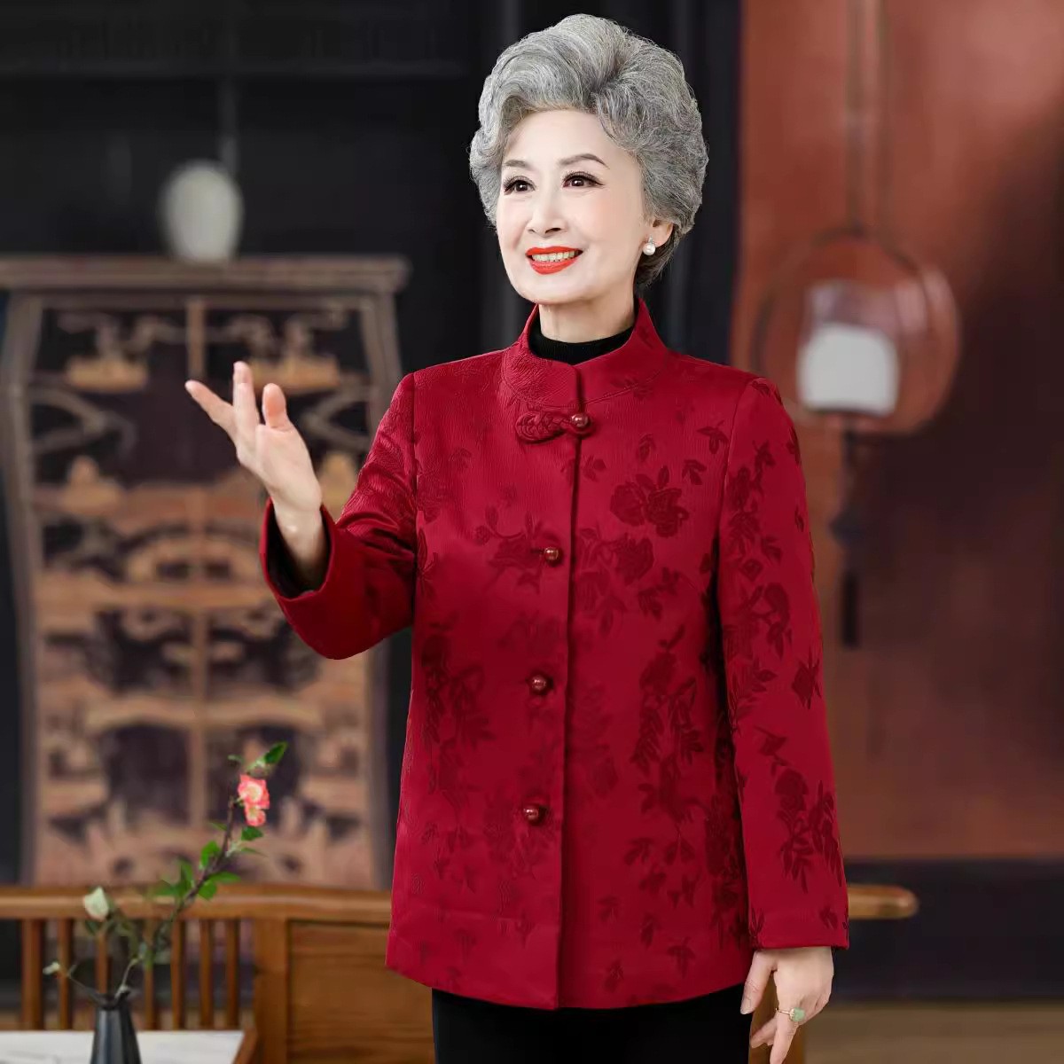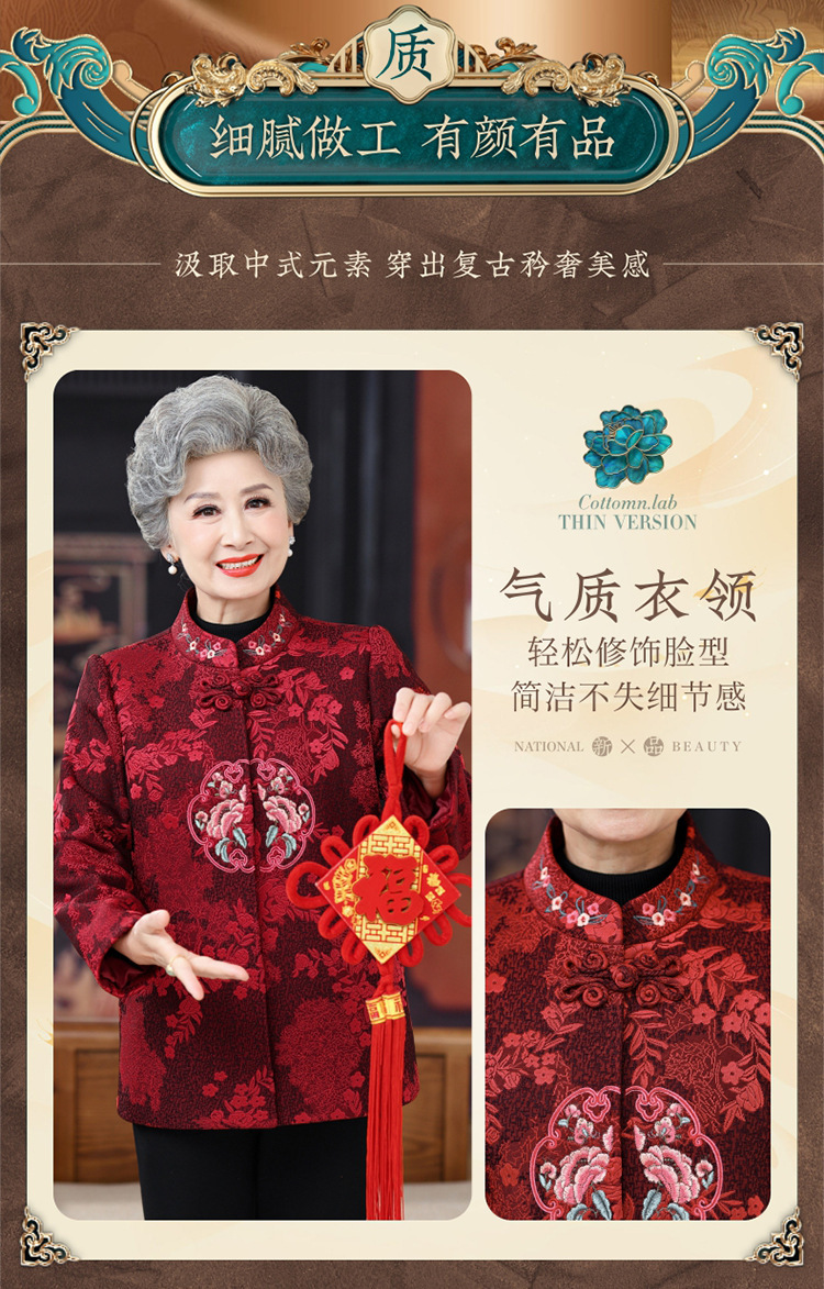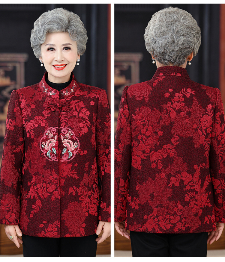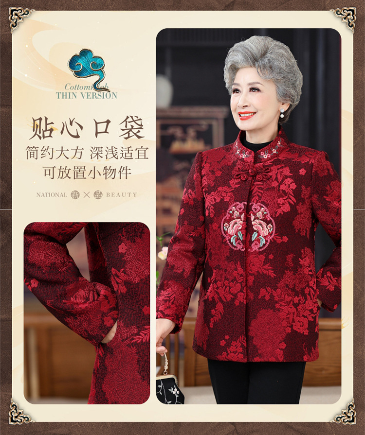 高齢者唐装女性老婦人中国風コートお祝い披露宴ドレス母春装60歳祖母秋装