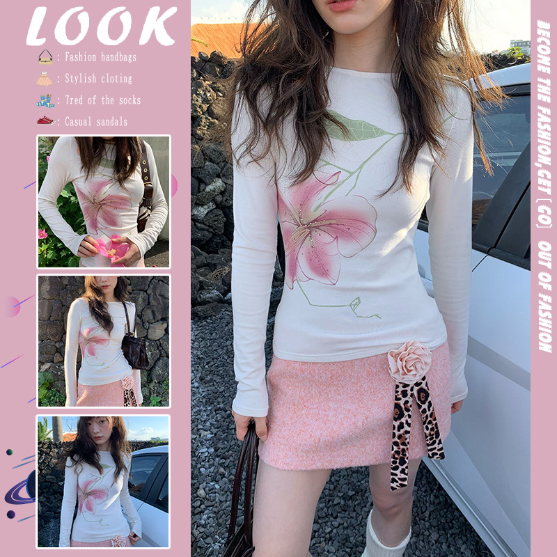 アメリカ学院のうその2つの大衆はシャツの長袖のtシャツの女性の春秋の新型の修身をつなぎ合わせて腰の上着のinsを収めます。