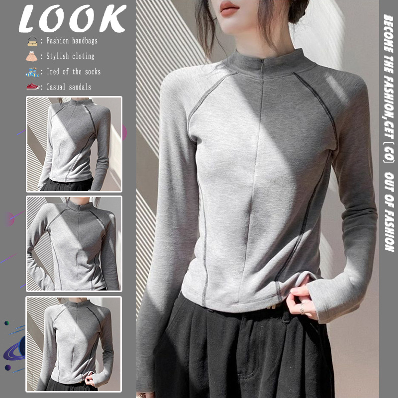 半高襟ファスナー両面徳絨毛長袖tシャツ女性秋冬新商品スリム着痩せ中に保温して上着を着ます。