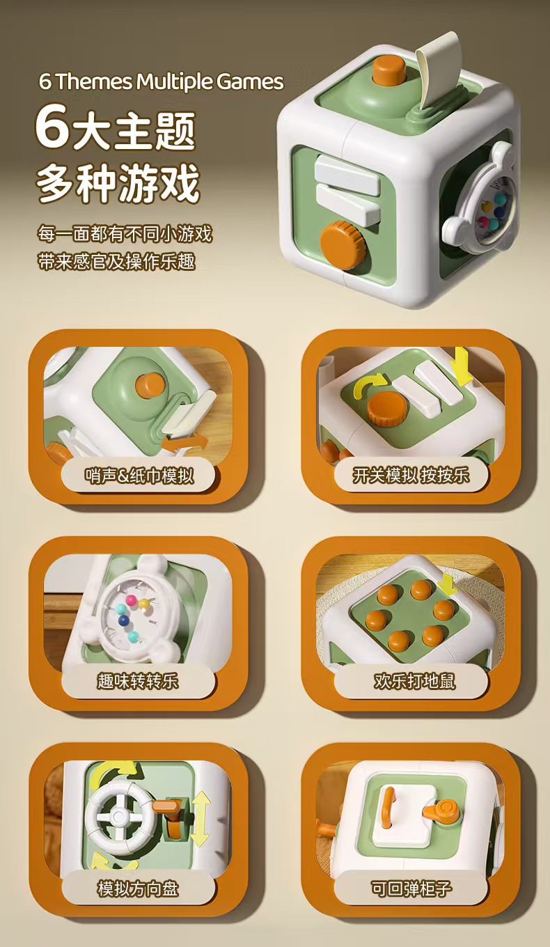 跨境宝宝蒙氏手抓球多功能忙碌球早教益智感观六面体旋转转乐玩具