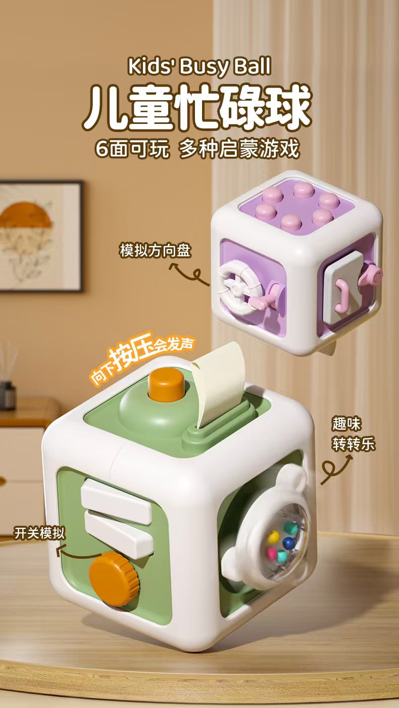 跨境婴儿忙碌板手抓球益智智立方六多面体魔方动动乐早教忙碌球
