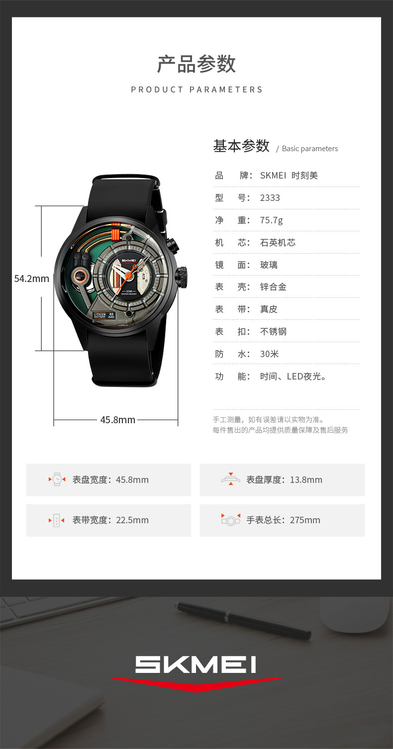 机芯:石英机芯+日本电池