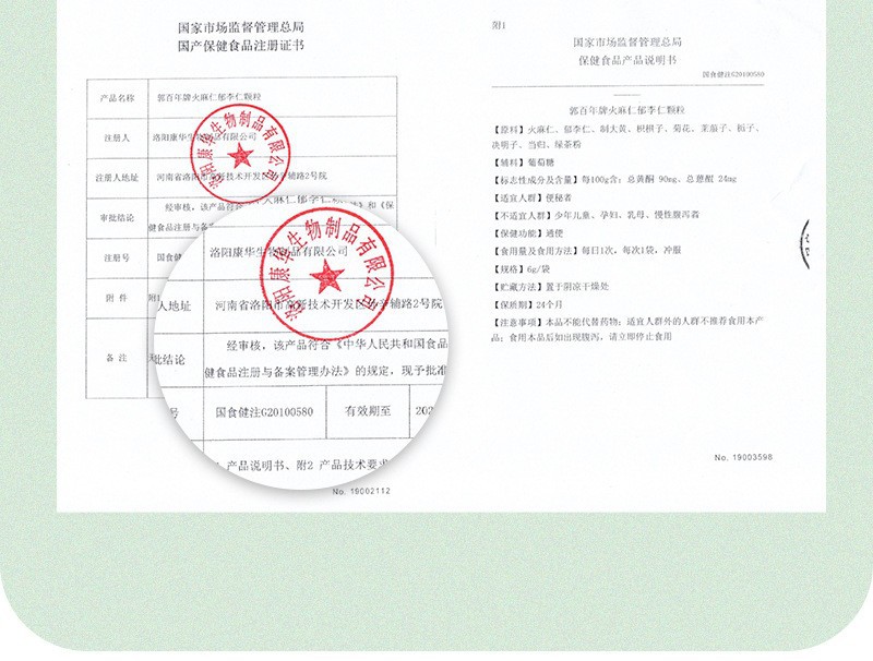 郭百年ブランド火麻仁郁李仁顆粒6g * 6袋/箱保健機能: 通便
