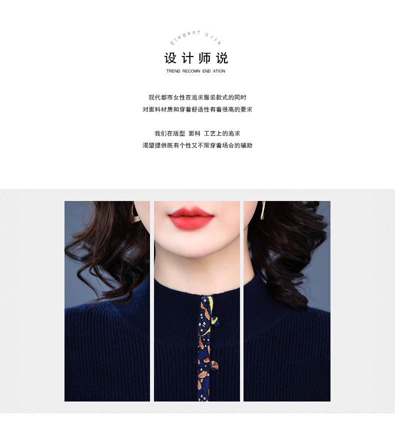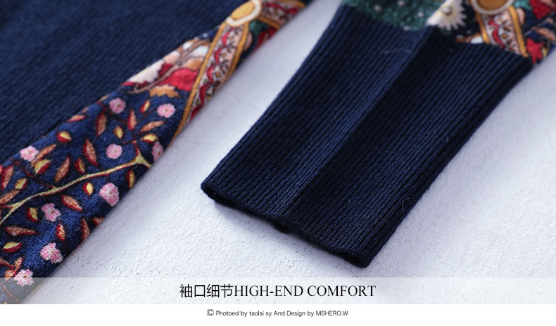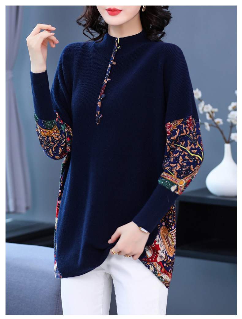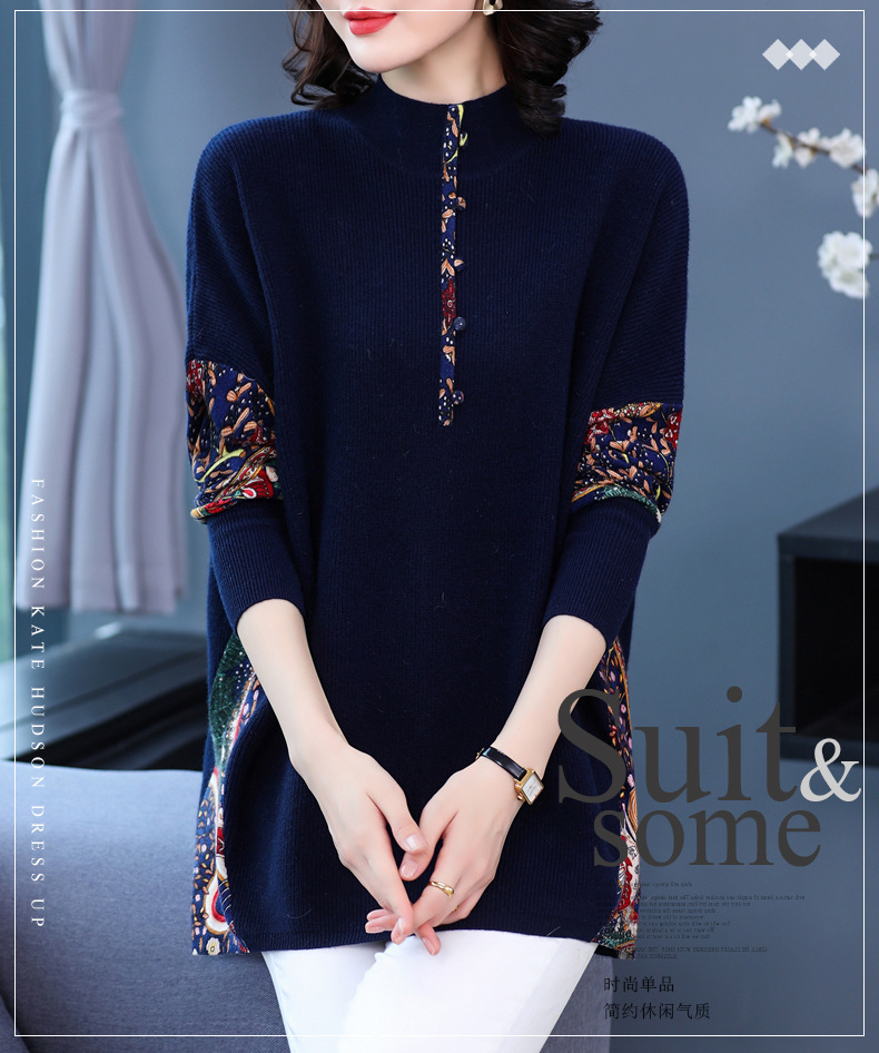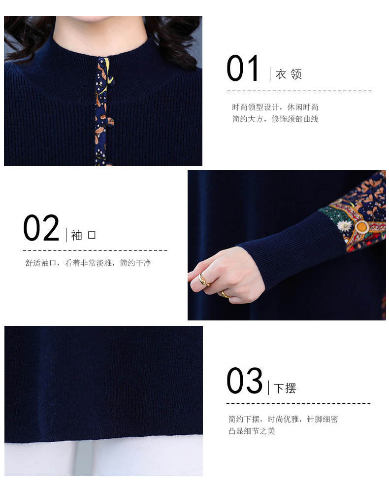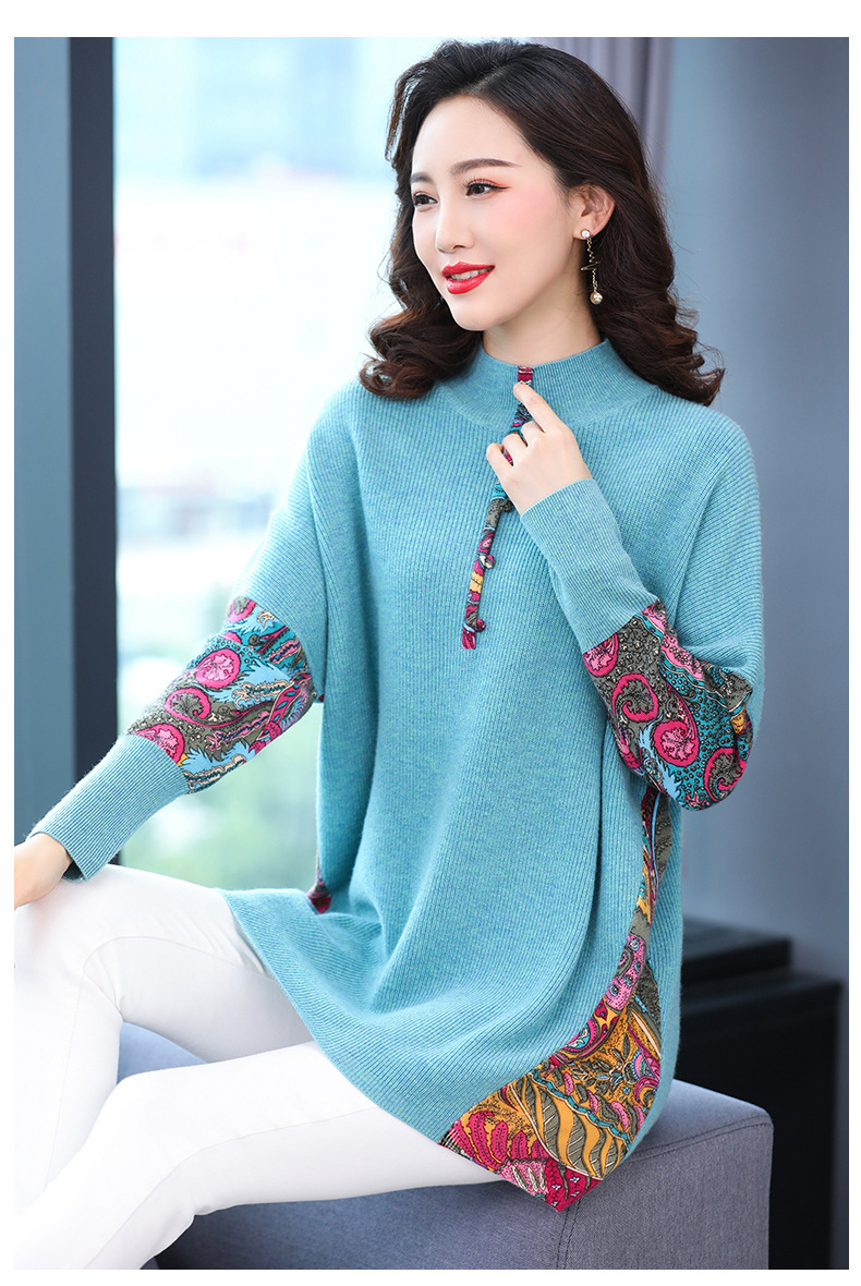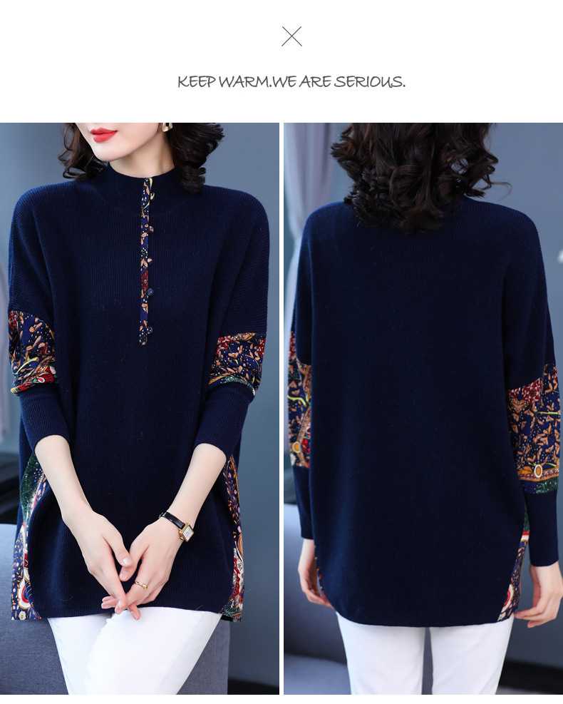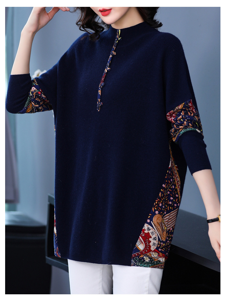 秋冬の中のミディアムニットの女性の中年のお母さんのコウモリの袖のプリントのセーターの大きいサイズのゆったりしている底のシャツの上着