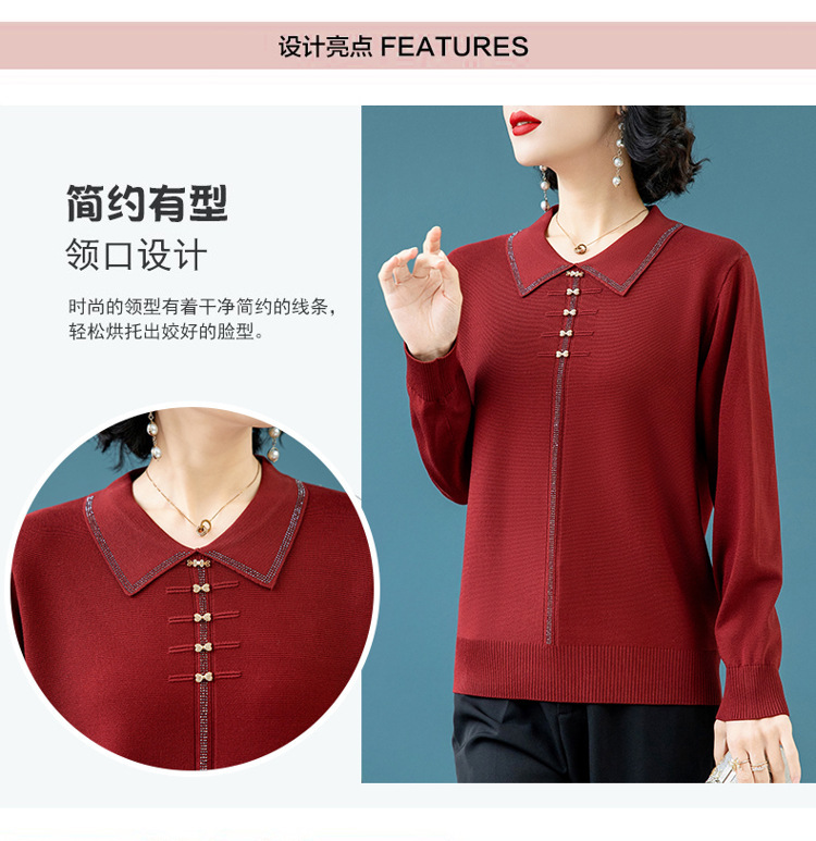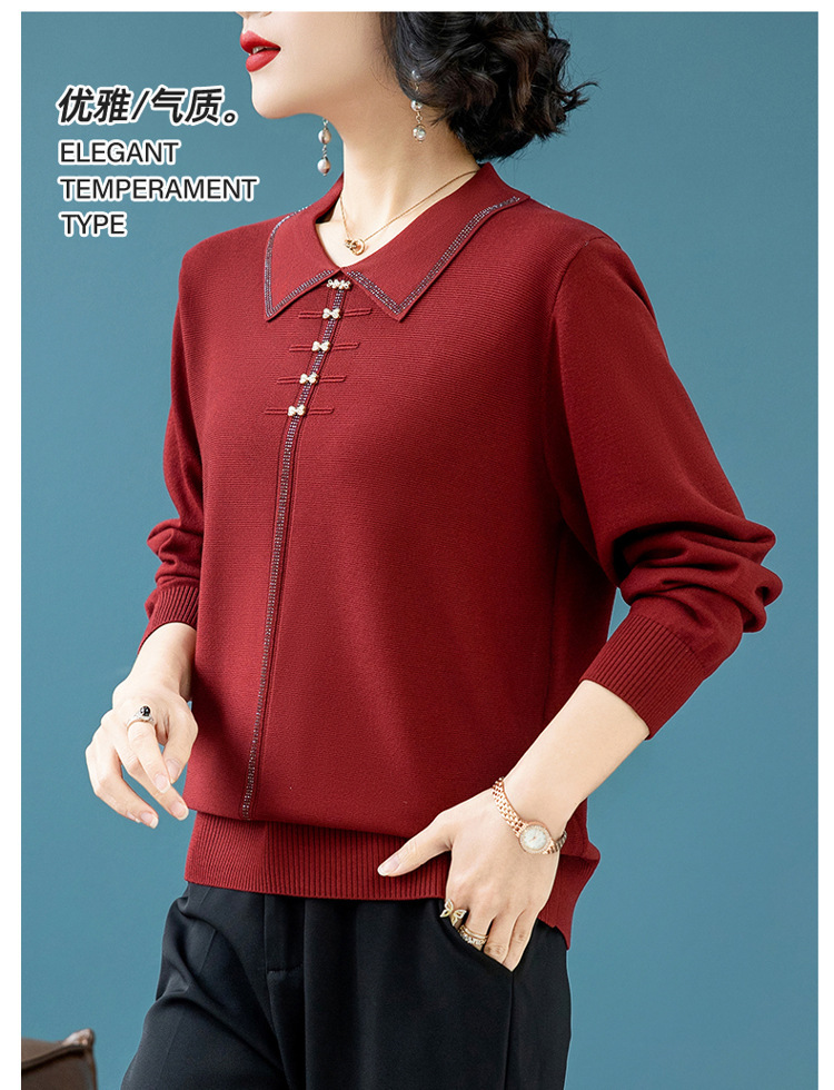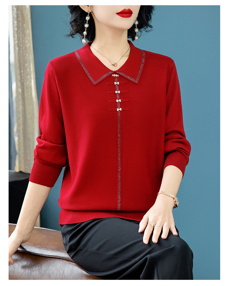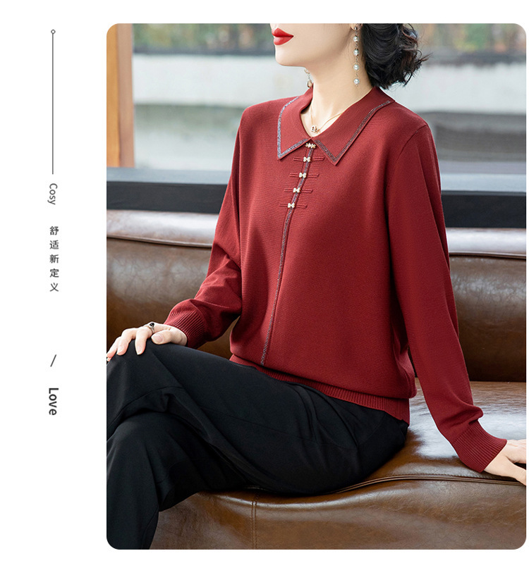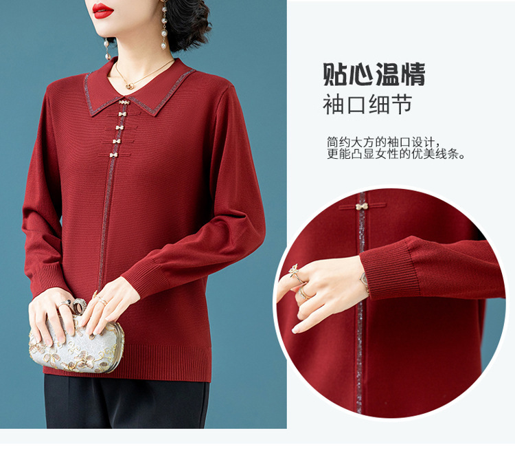 2025年の新型春服の中でお年寄りのお母さんの喜姑の赤いメリヤスの上着の小さいシャツの洋風のセーター