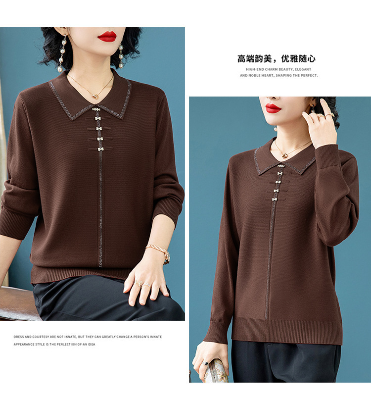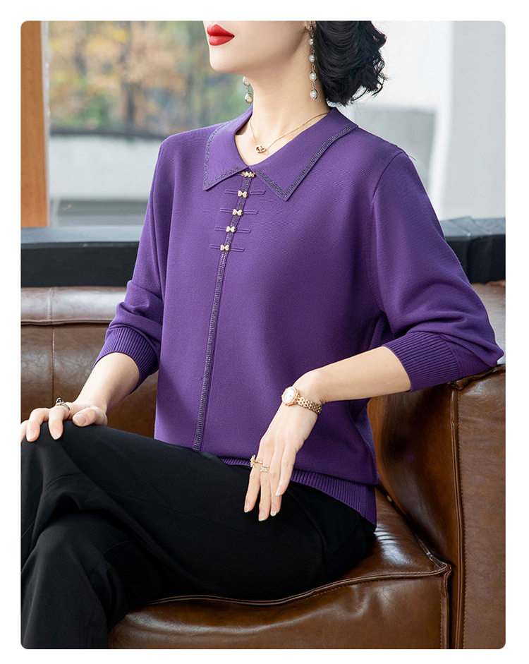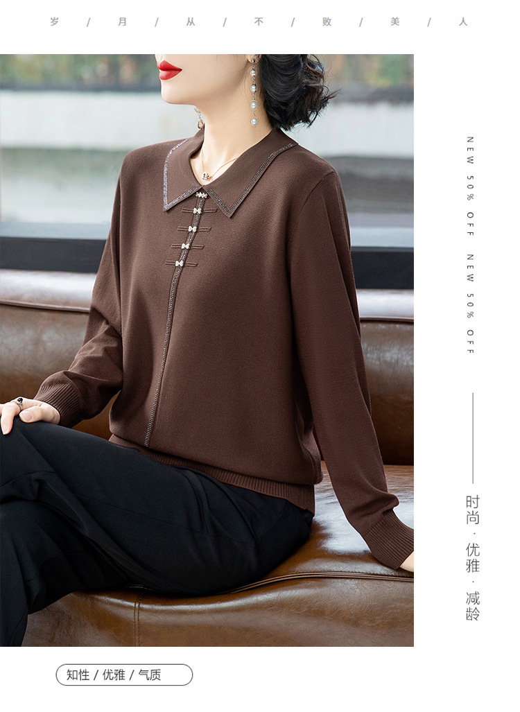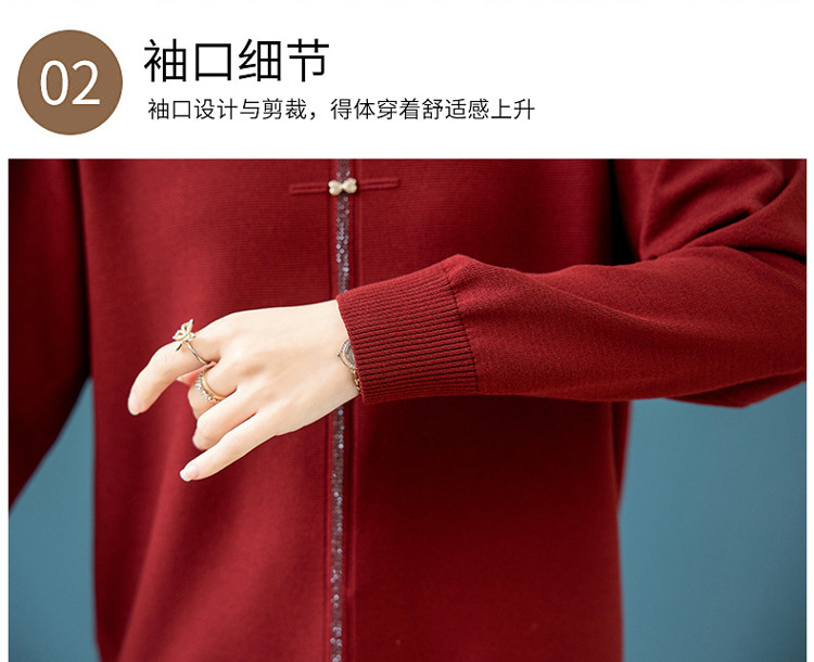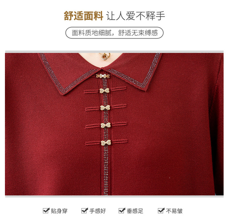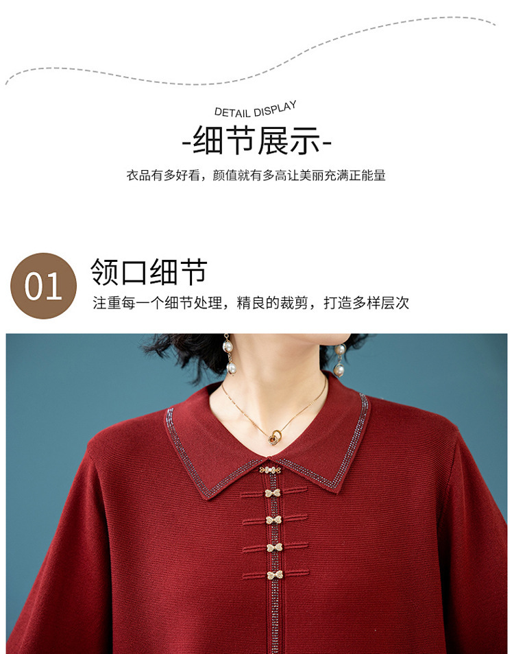 2025年新作ママ服春秋ニットツーピースセット中高年女性服中国風トップス秋冬セーターコート