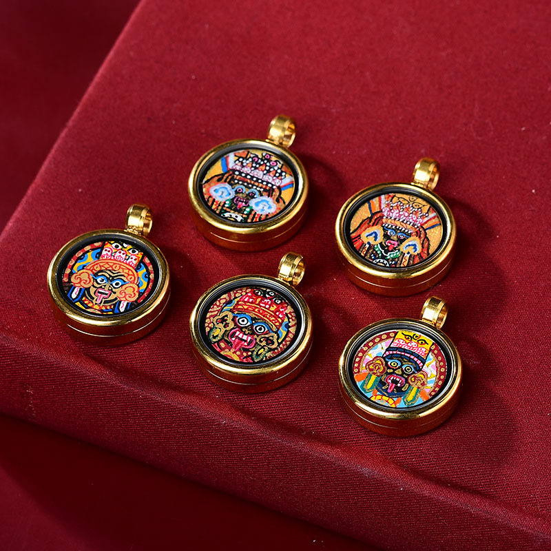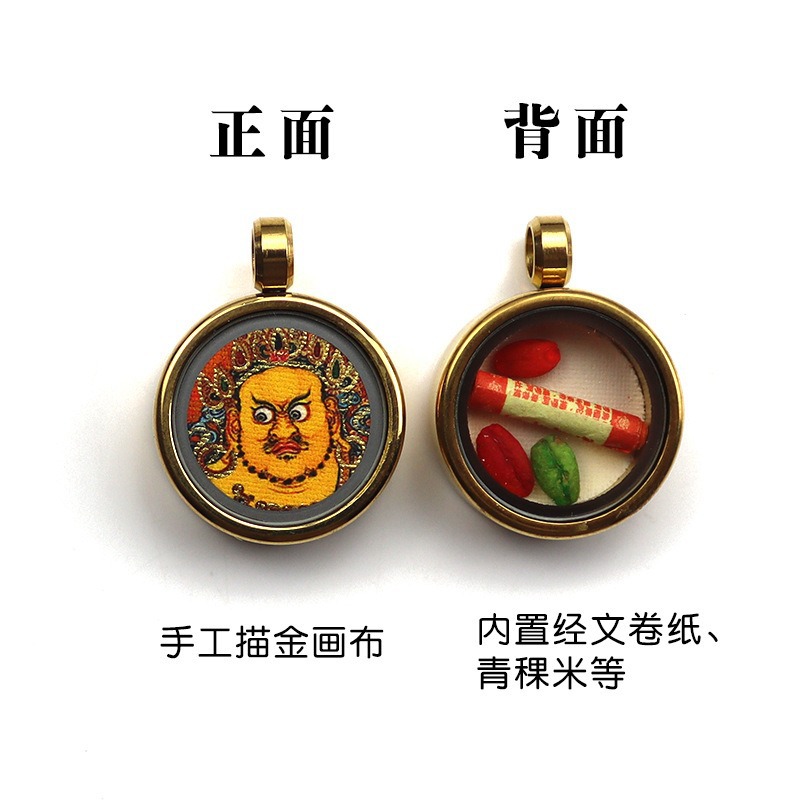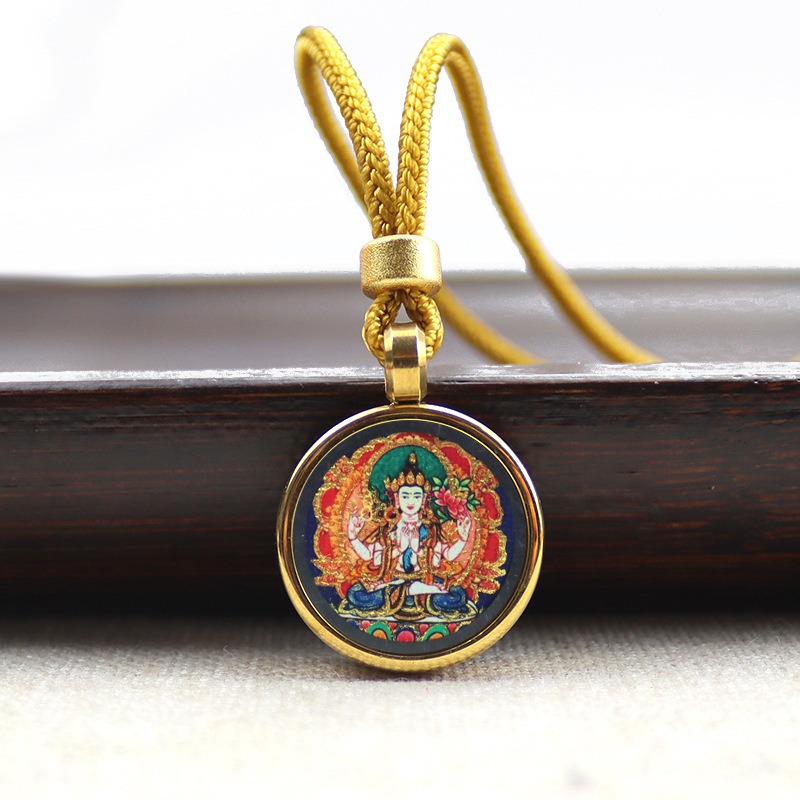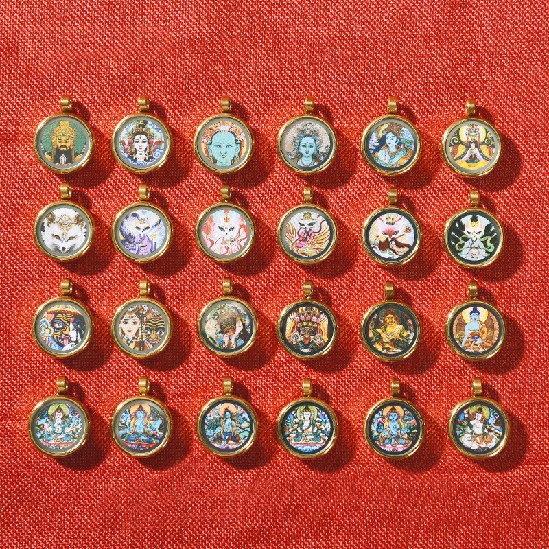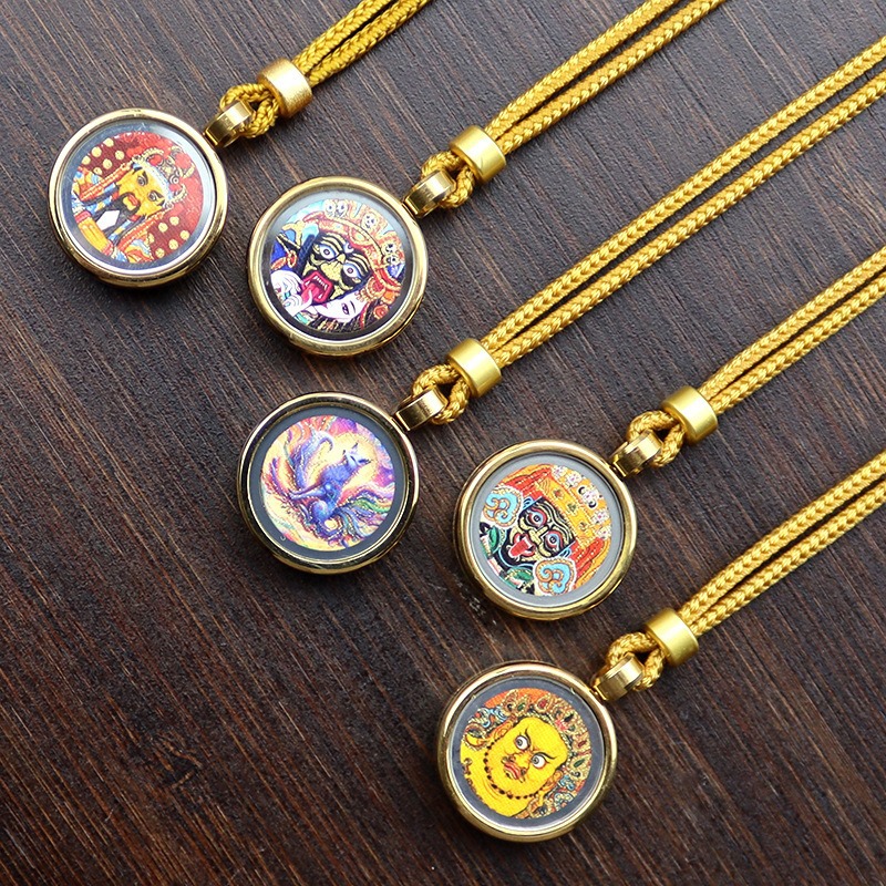 手描きゴールドラウンドタンカペンダント八つの守護聖人黄富前世と今生ミニタンカネックレス