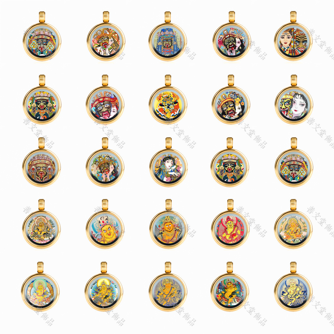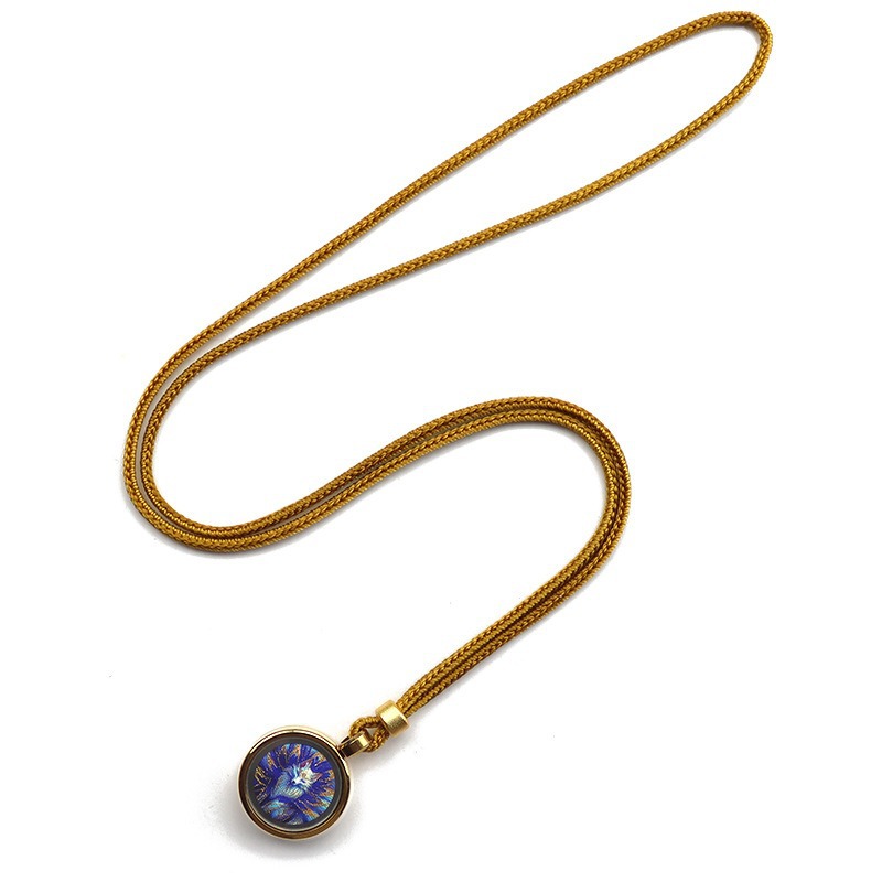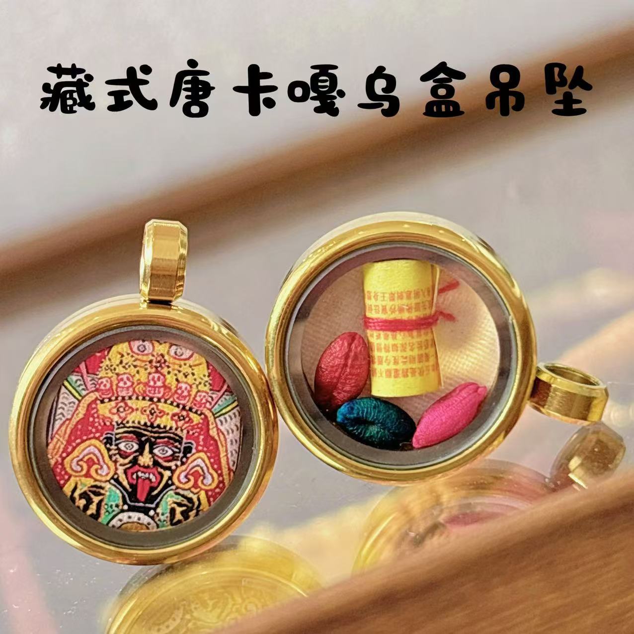 手描きゴールドラウンドタンカペンダント八つの守護聖人黄富前世と今生ミニタンカネックレス
